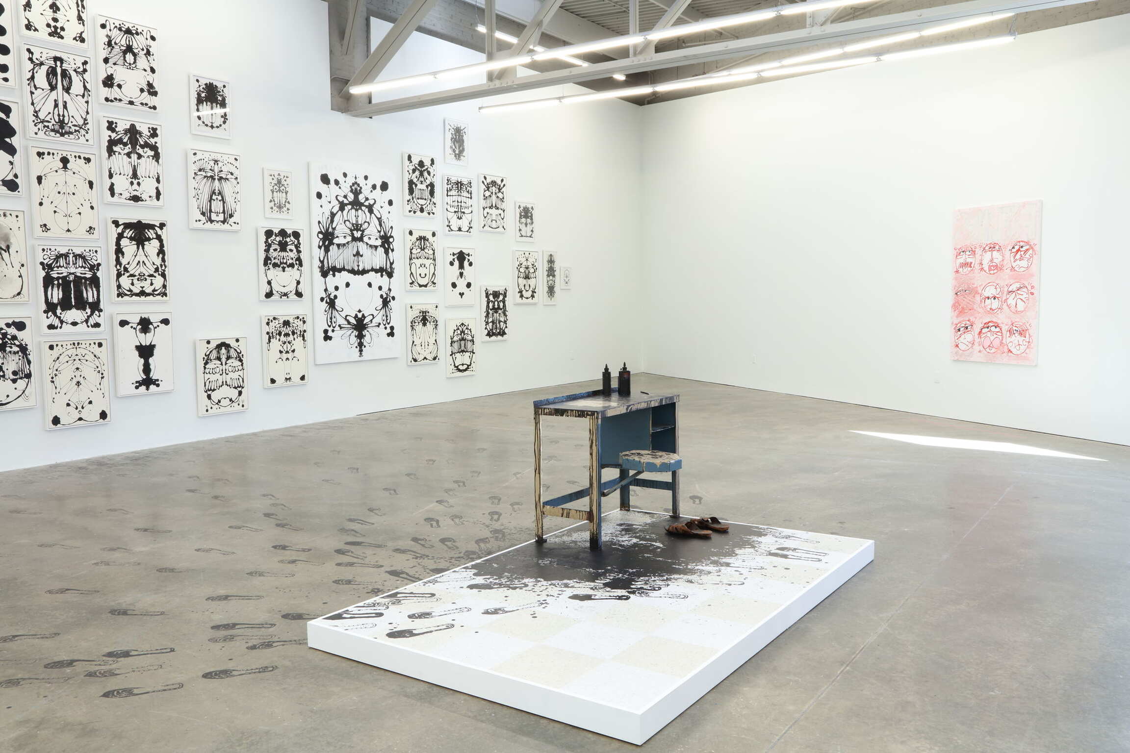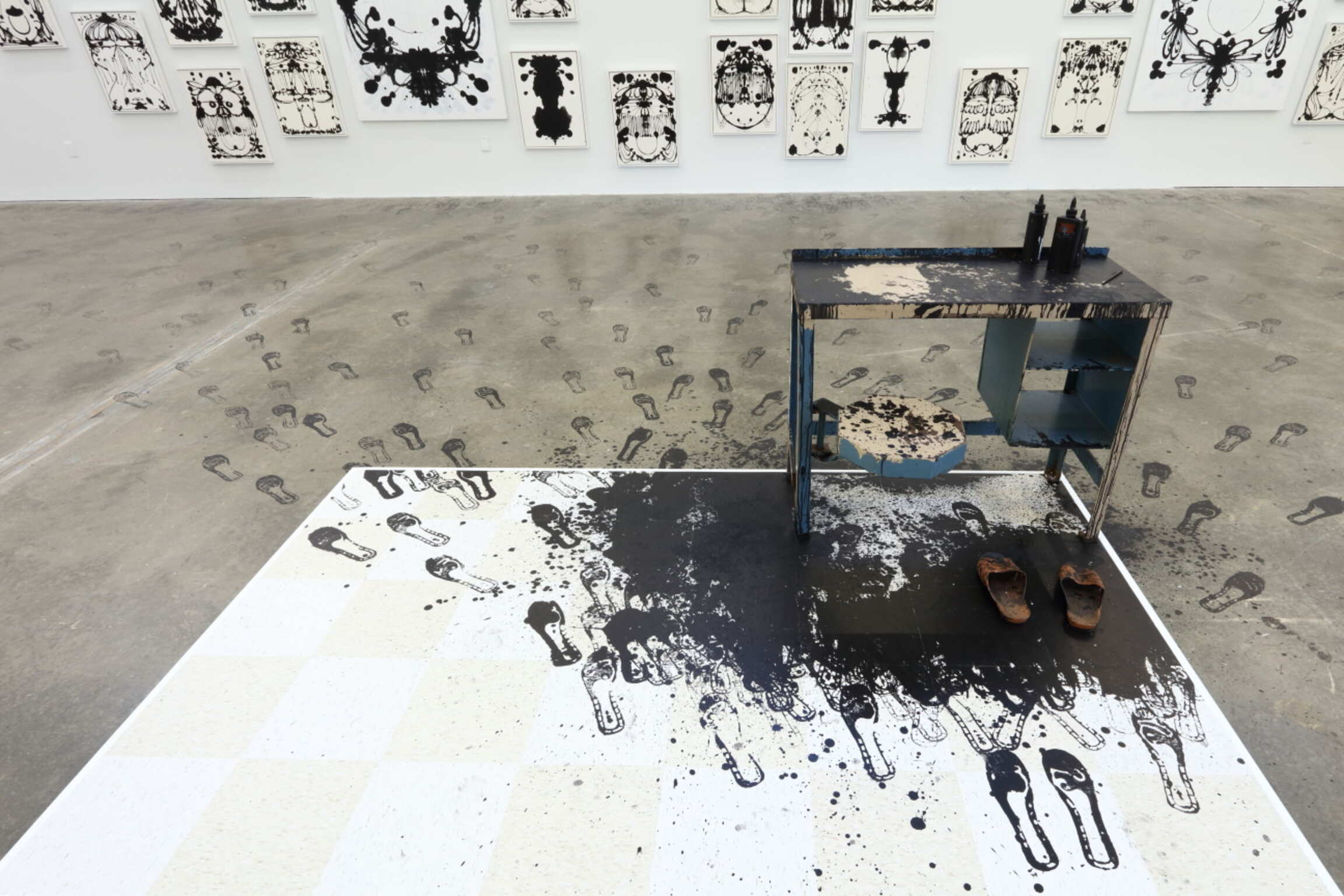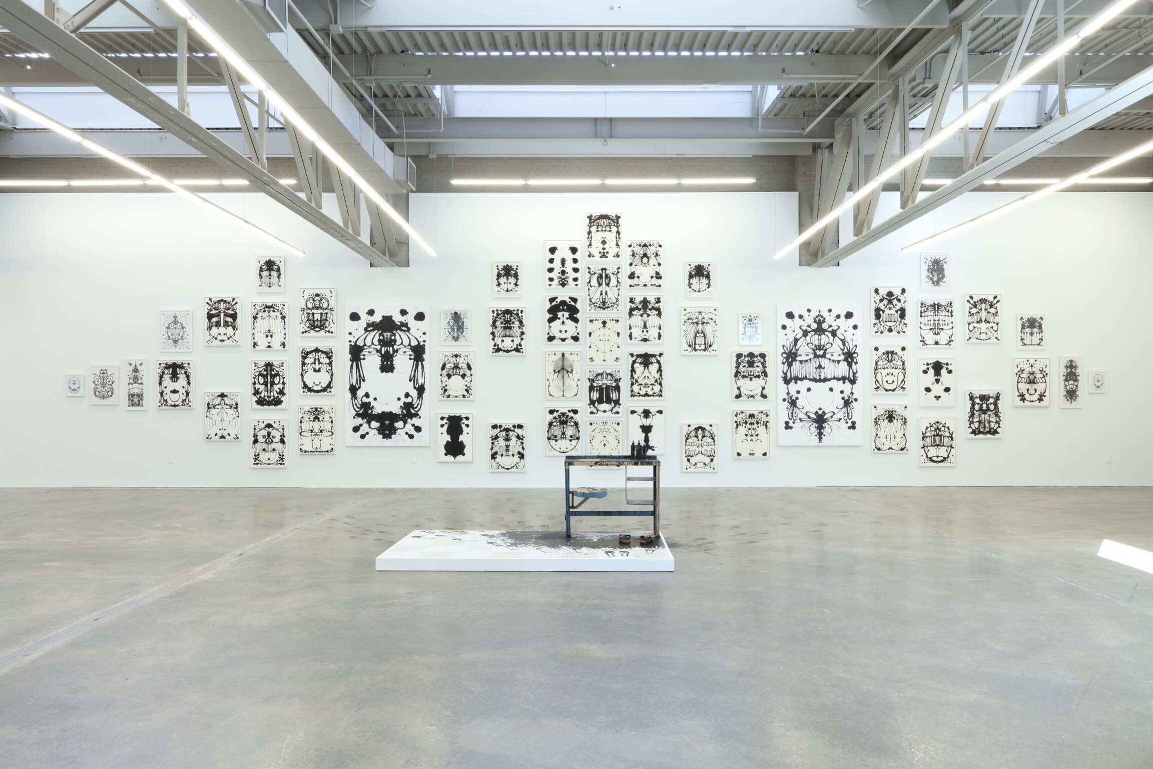 Curtis’s approach in the more abstract and nuanced inkblot paintings entrusts them to chance while relying on his gestural muscle memory. The fundamentally ambiguous nature of inkblots has proven to be a stable point of departure for Curtis to capture the complexity of human emotions and perceptions. The symmetrical and mirrored abstracts encourage viewers to consider the balance within their own emotions and contemplate how their personal experiences connect them to each artwork on an individual level. This participatory aspect elevates Curtis’ Inkblot paintings beyond mere visual stimuli and turns them into dynamic and interactive maps for psychological exploration.