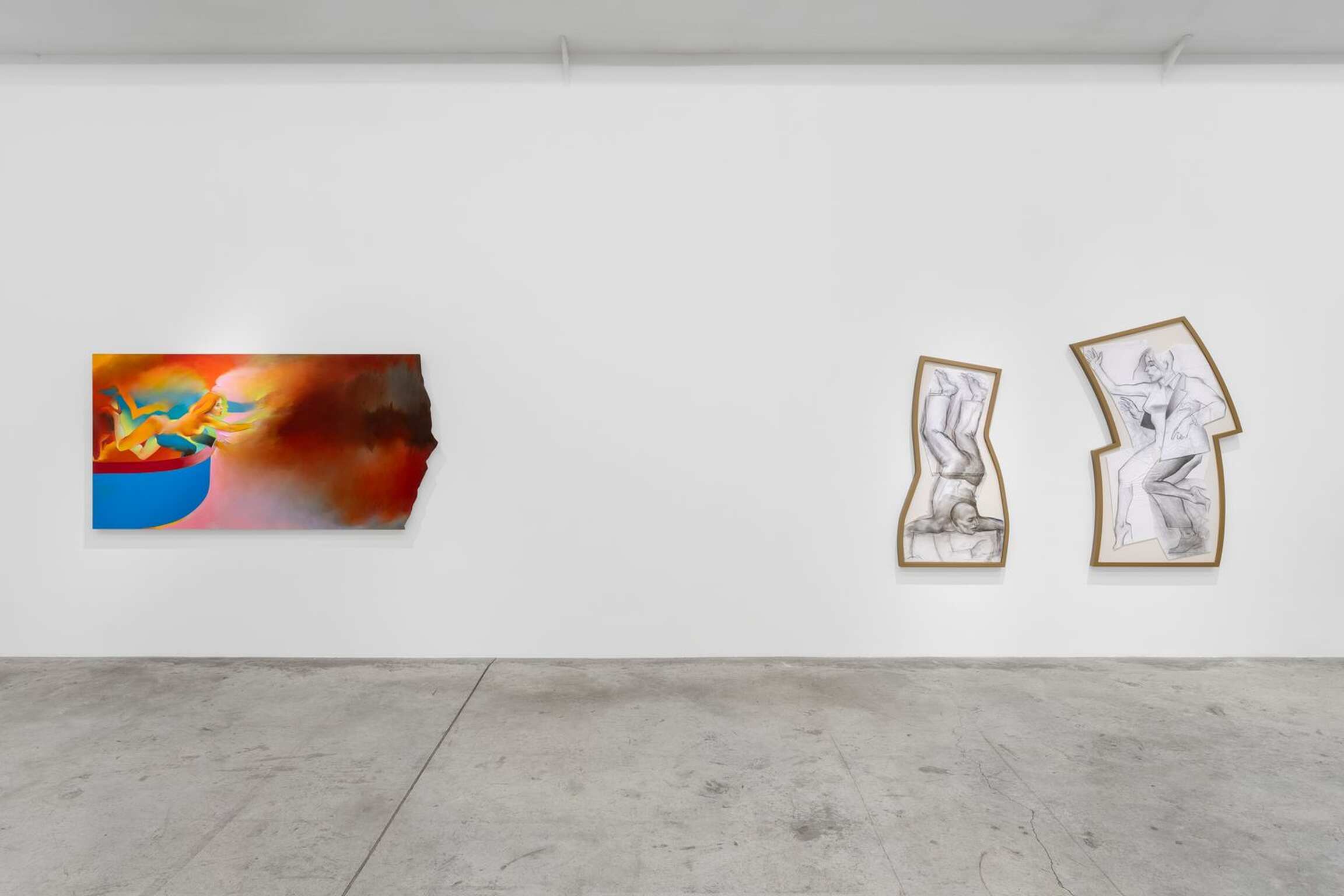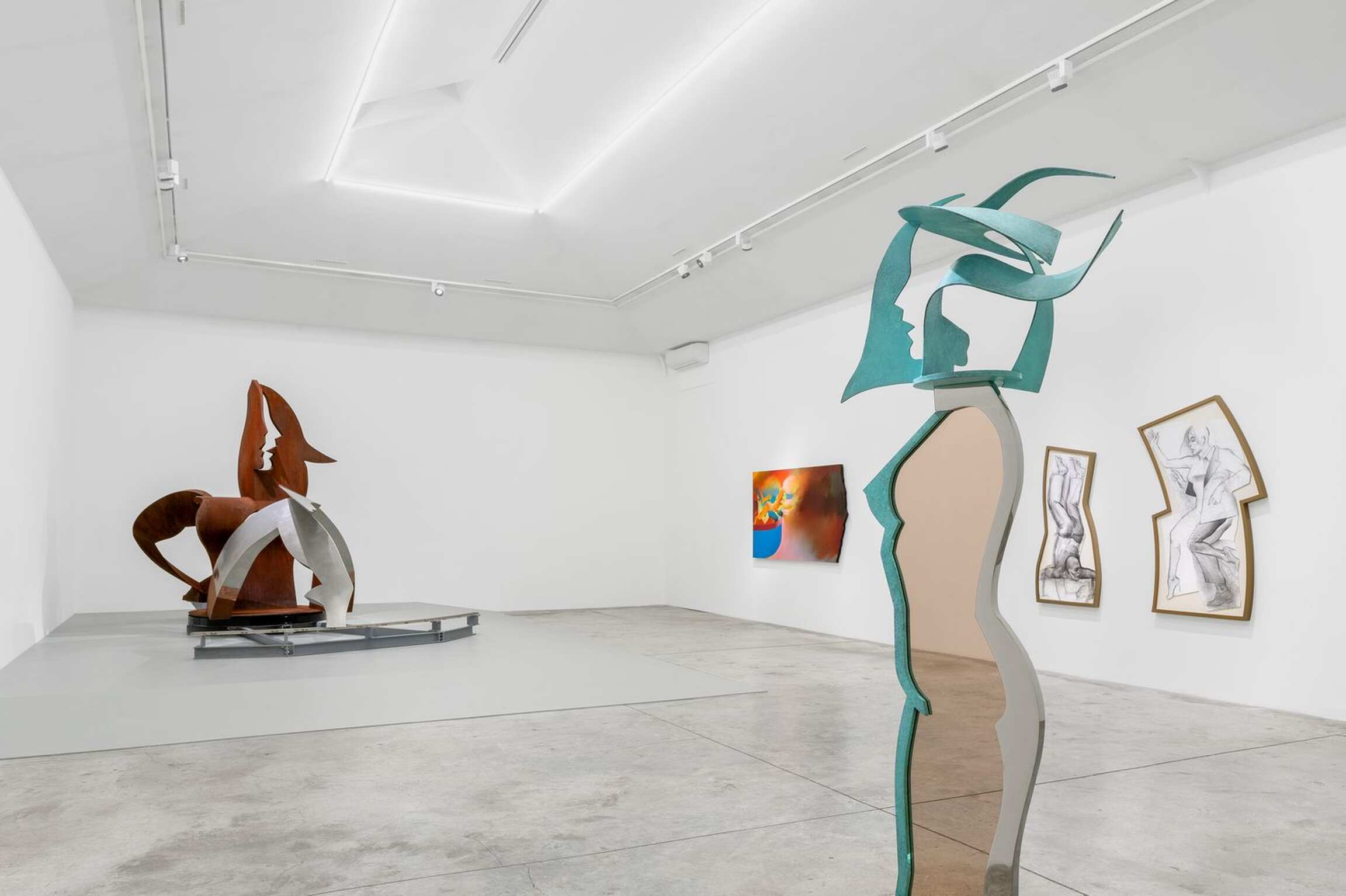 Un air de défi exubérant imprègne les œuvres qu'Allen Jones a réalisées depuis 2017, lorsqu'il a fêté ses quatre-vingts ans, la période que couvre cette exposition. Ces peintures, sculptures et hybrides entre les deux, qui incluent de nouvelles directions audacieuses, constituent non seulement un refus vigoureux de renoncer à la quête de toute sa vie d'imagerie érotique centrée sur les corps féminins, mais aussi un sentiment de célébration et d'émerveillement quant au fait qu'il soit encore là. À l'instar des papiers découpés d'une fraîcheur stupéfiante réalisés par son héros, Matisse, au cours de la décennie précédant sa mort, cette floraison tardive témoigne d'une vigueur juvénile, d'une invention et d'un sens de l'abandon pleins de joie qui n'a rien à envier au pop art révolutionnaire sur lequel Jones a assis sa réputation et sa place dans l'histoire de l'art au début des années 1960.