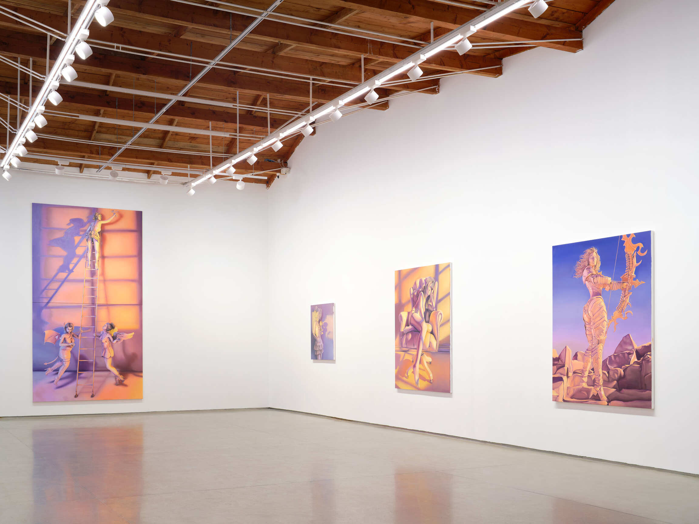 What does the future hold for us? We want our artists to be prophets. Whether it’s Francis Picabia’s transparencies reading as proto-Photoshop imagery or Warhol predicting our cultural obsession with fame or Richard Prince’s “Gangs” as forerunner to a Google image results page, we like it when painters operate as fortune tellers, too. Albert Oehlen made computer painting in the early 1990s using Texas Instruments software, for example. Technology has always impacted creative output from camera shudder speeds to the advent of acrylic. Almost in reaction to Andy Warhol’s silk-screening, Jean-Michel Basquiat embraced the novelty of color Xeroxes on his canvases as a form of serialization in the 1980s. More recently, the advancement of 3D rendering emerged as a means of drawing for many contemporary artists - Avery Singer, and Mike Lee - which Emma Stern adeptly harnesses to her pictorial advantage. “I use software that’s mostly for game developers to do character design,” explains Stern. “It also gets used a lot by the erotica community.” After graduating from Pratt in 2014, Emma found herself without an abundance of figure models and opted to invent her own, which in turn led to an entire universe creation. Her “materials” she likened to digital lava, hence her Instagram handle @lavababy. “Anyone on social media is promoting an avatar of themselves already,” she theorizes “a hyper-curated virtual self. If we’re all doing that now anyway, might as well make it art, right?”