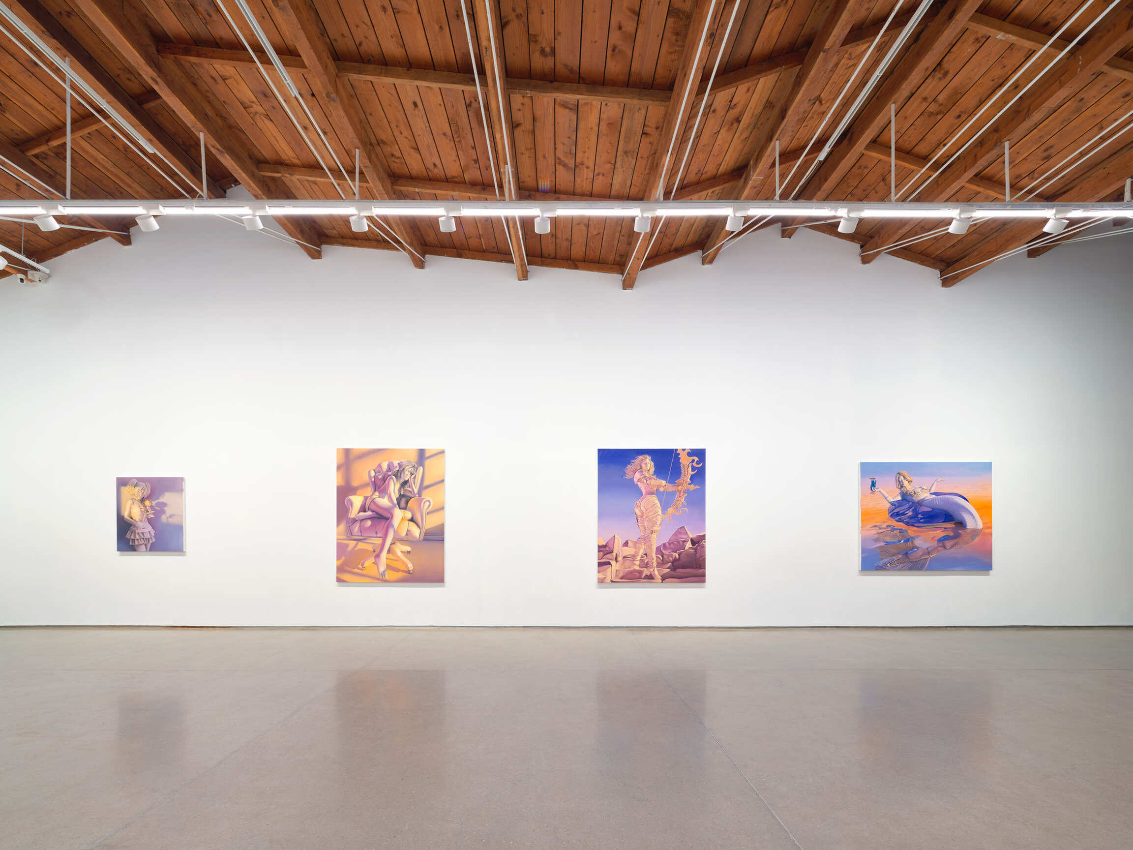 Often people will comment to Emma Stern about the provocative nature of her subject matter which she finds intriguing given there’s practically no nudity in her paintings whatsoever. “I’ve always said the avatars I create are a form of extended non-literal self-portraiture so if there’s images of a teen-age girl, it’s a stand-in for me at that age,” says Stern. “I have those memories and carry those experiences with me and sometimes I make art about it. I never imagined that would be problematic. There’s a part of me that still feels like a vulnerable sixteen-year-old, but then there is another part of me that feels like a hot centaur girl.”