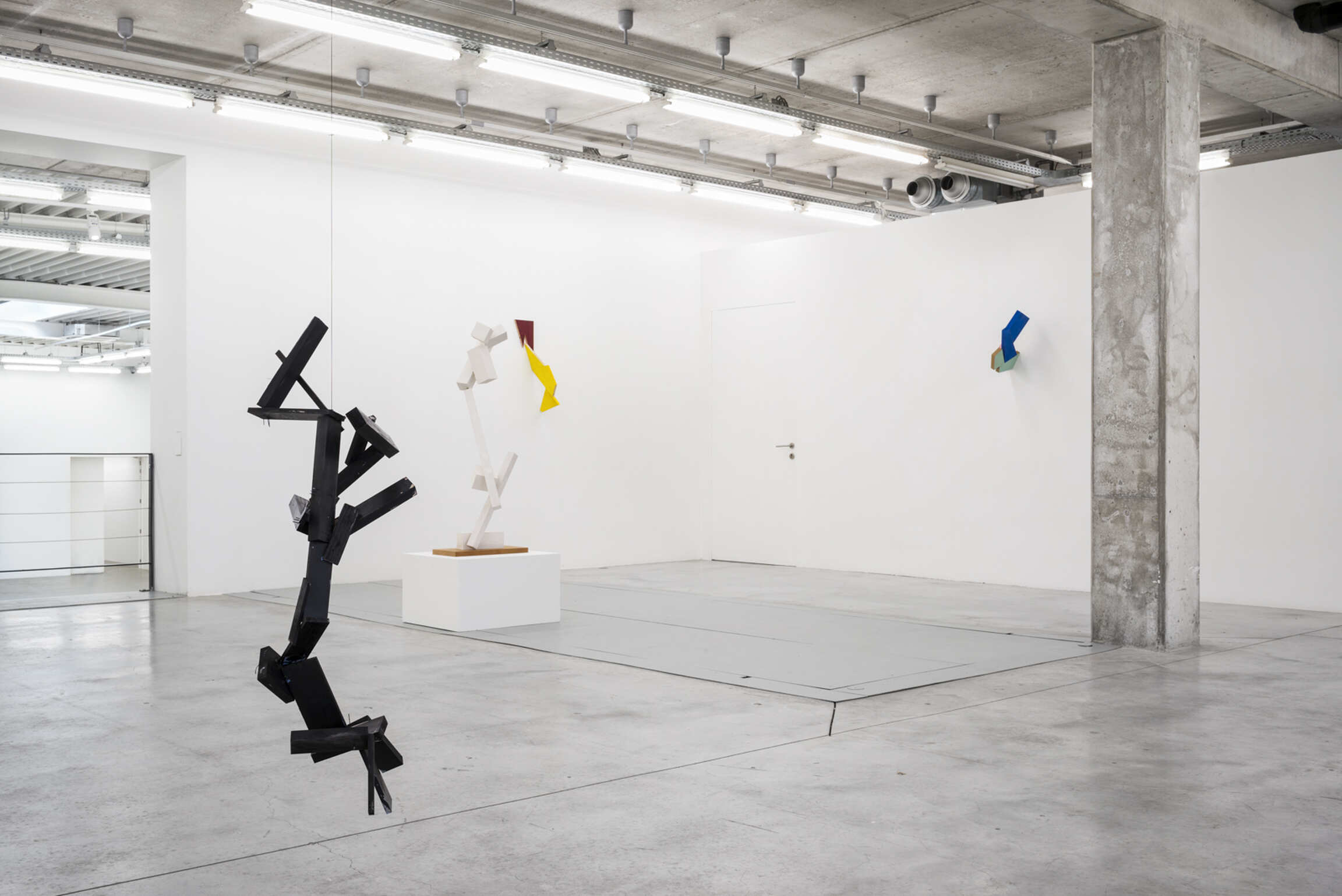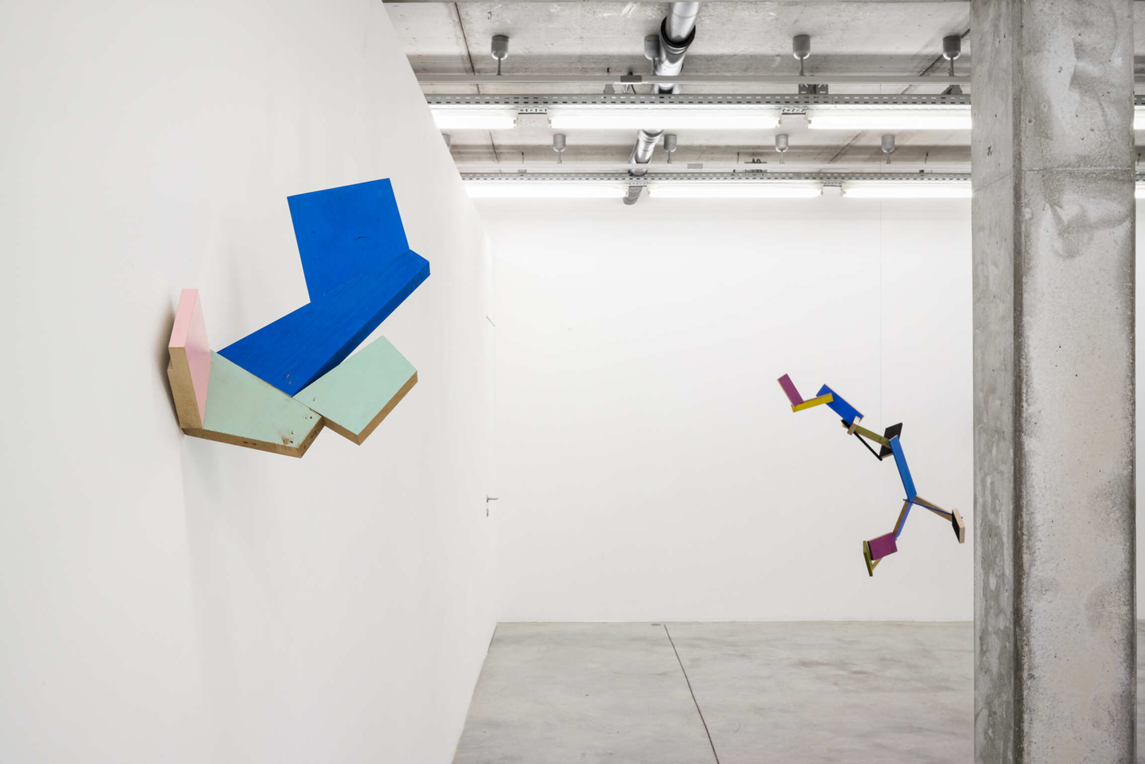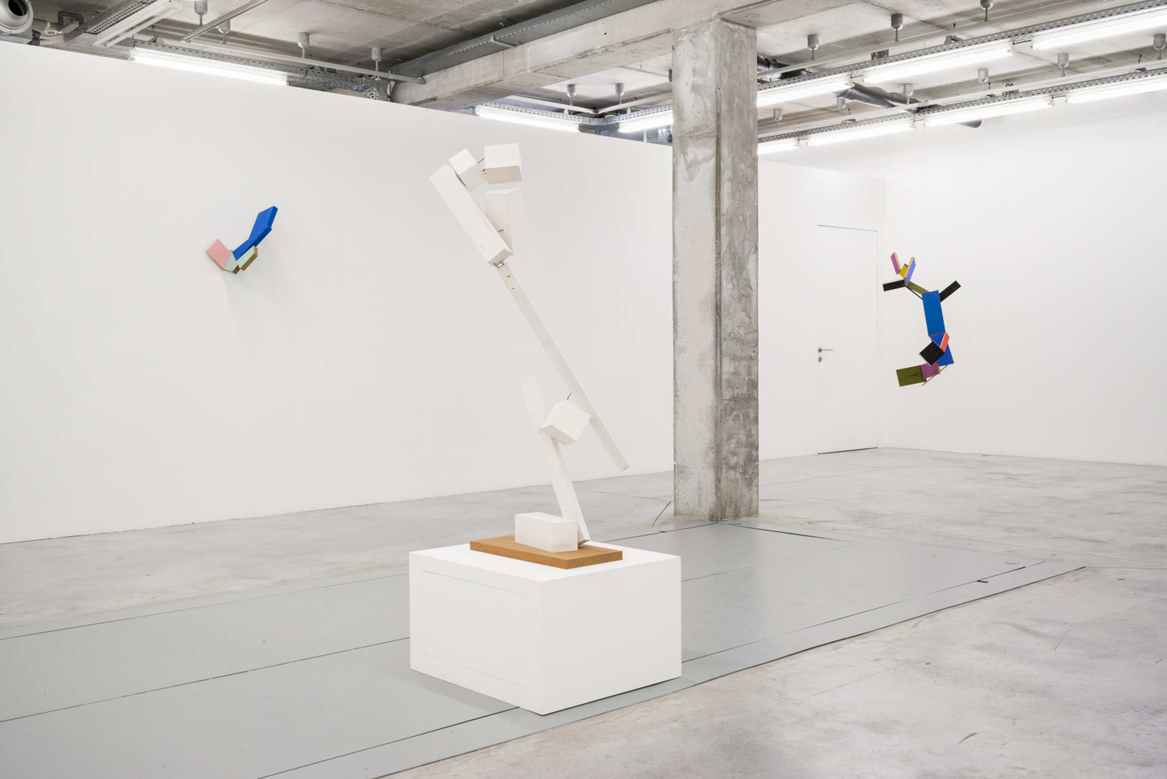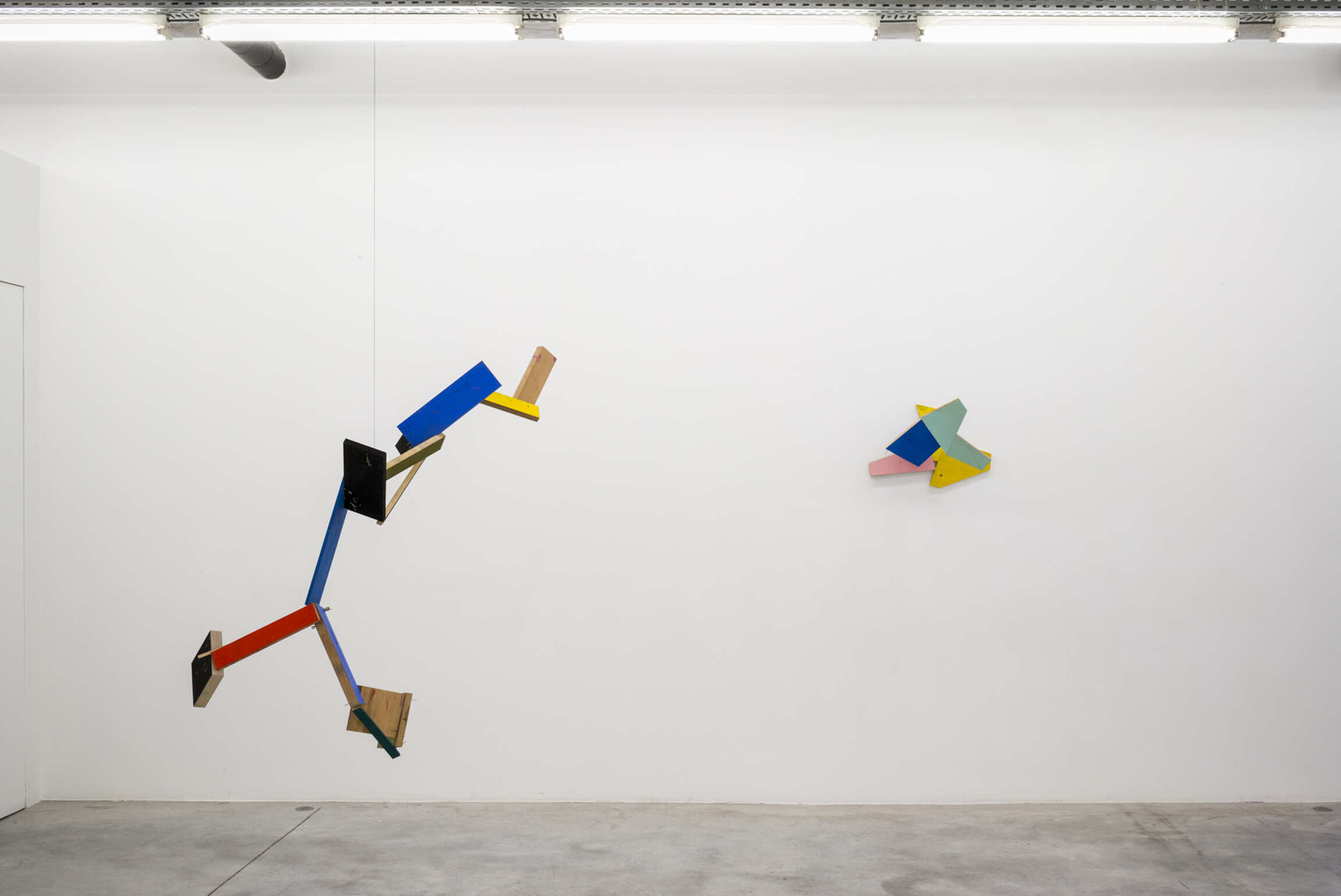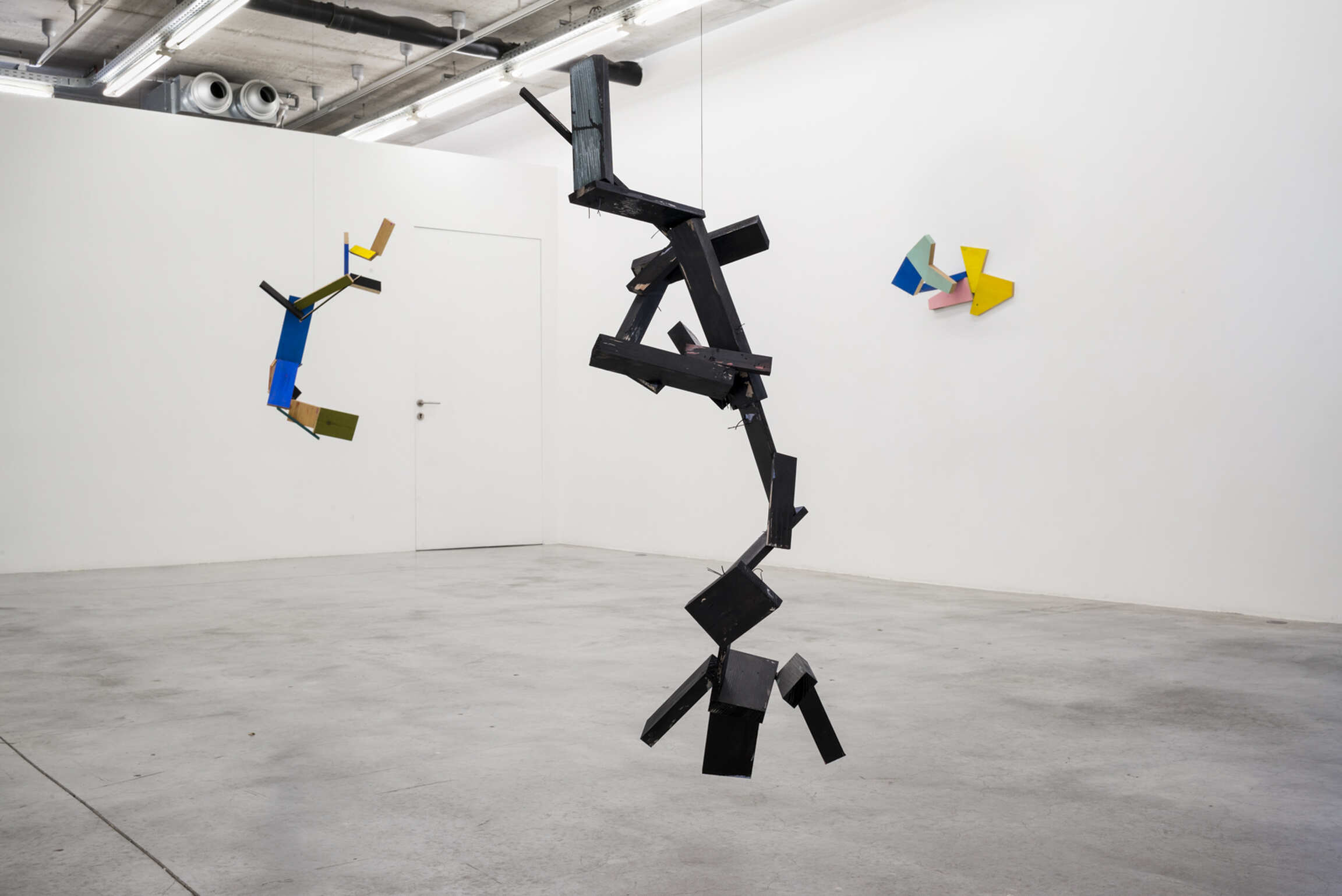 Inspired by minimalism and his stay in India as a volunteer with the American Peace Corps, Joel Shapiro's style took on a more radical form in the 1970s, moving towards bronze anthropomorphic sculptures that defy the laws of gravity. Two central themes define Shapiro's work: the scale of objects and gravity. In his more recent series, Joel Shapiro has created structures that explore the imbalance and disintegration of material. His latest works on show at Almine Rech Gallery Brussels alternate between movable and fixed compositions, wood arrangements and chromatic games, whether placed against a wall or suspended in the air.