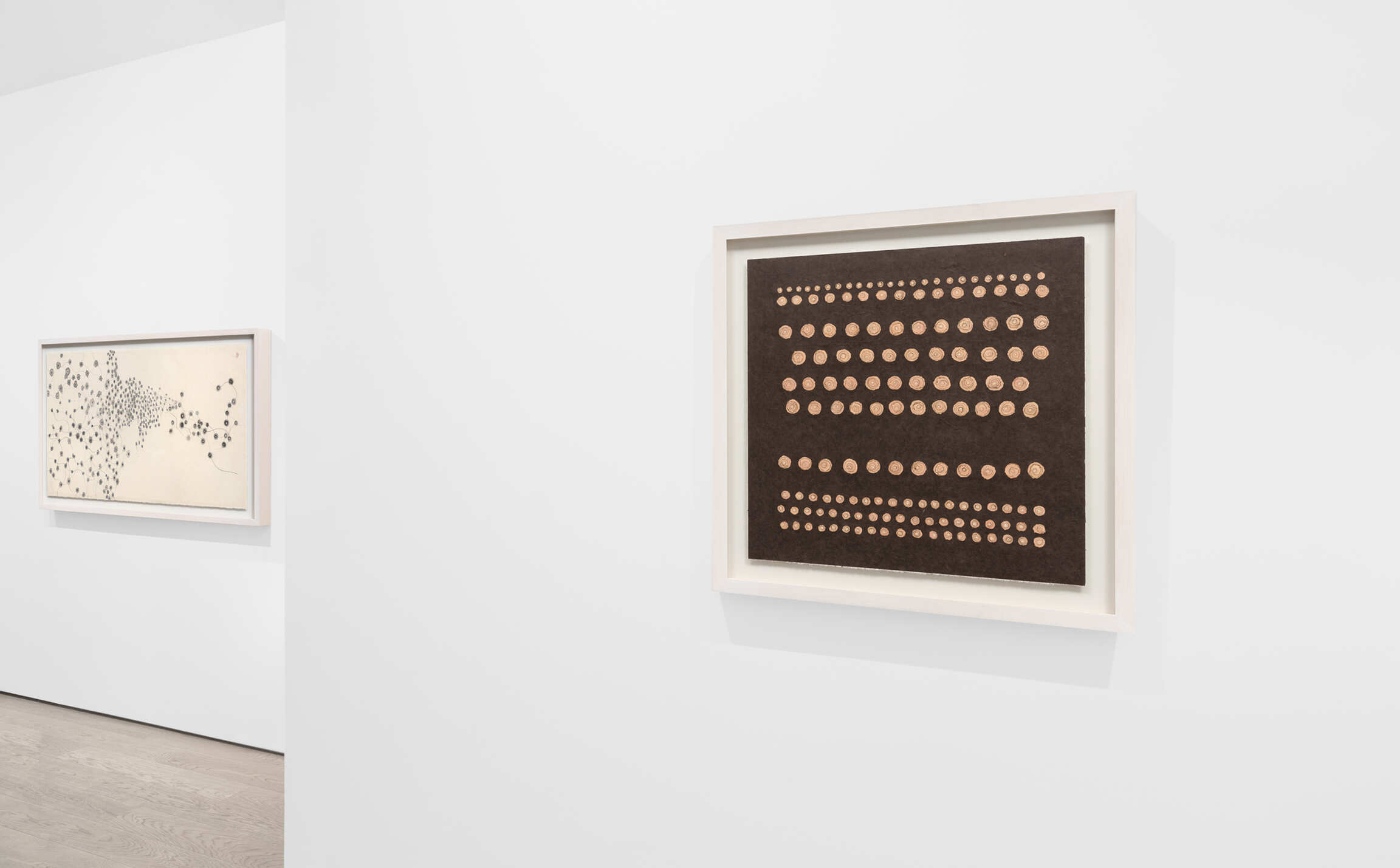 In the years since, hanji paper has remained the constant in an ever- evolving practice. Creating new work with ancient techniques of mark- making, Kim uses a simple toolbox that yields endless possibility. Rather than creating on the basis of a narrative, the artist remains focused on the materials in front of her and their unique qualities. She doesn’t set forth a plan prior to beginning a work, instead engaging with the medium in front of her to yield a result that is secondary to the process itself.