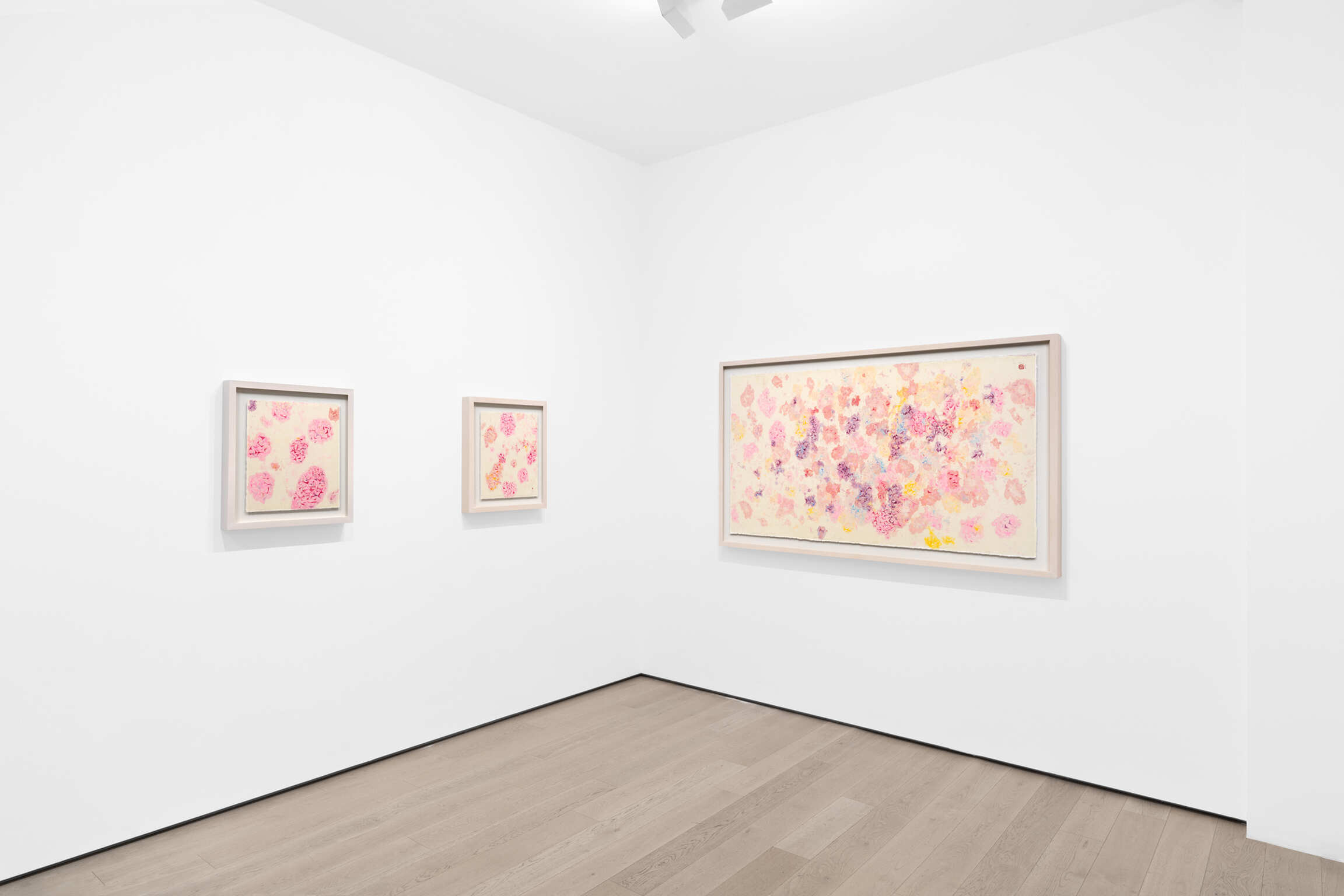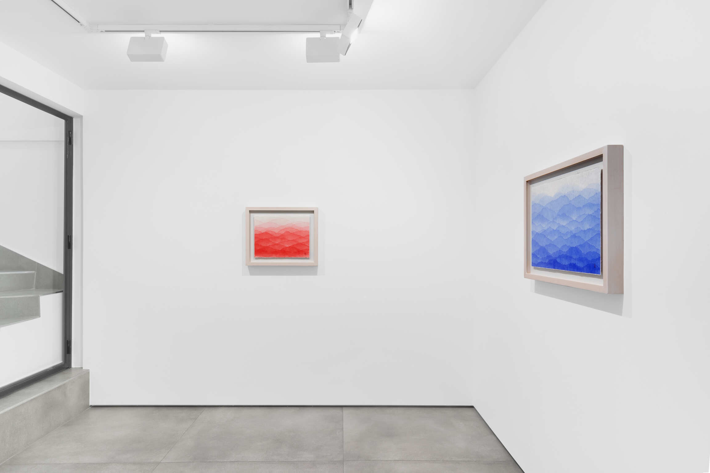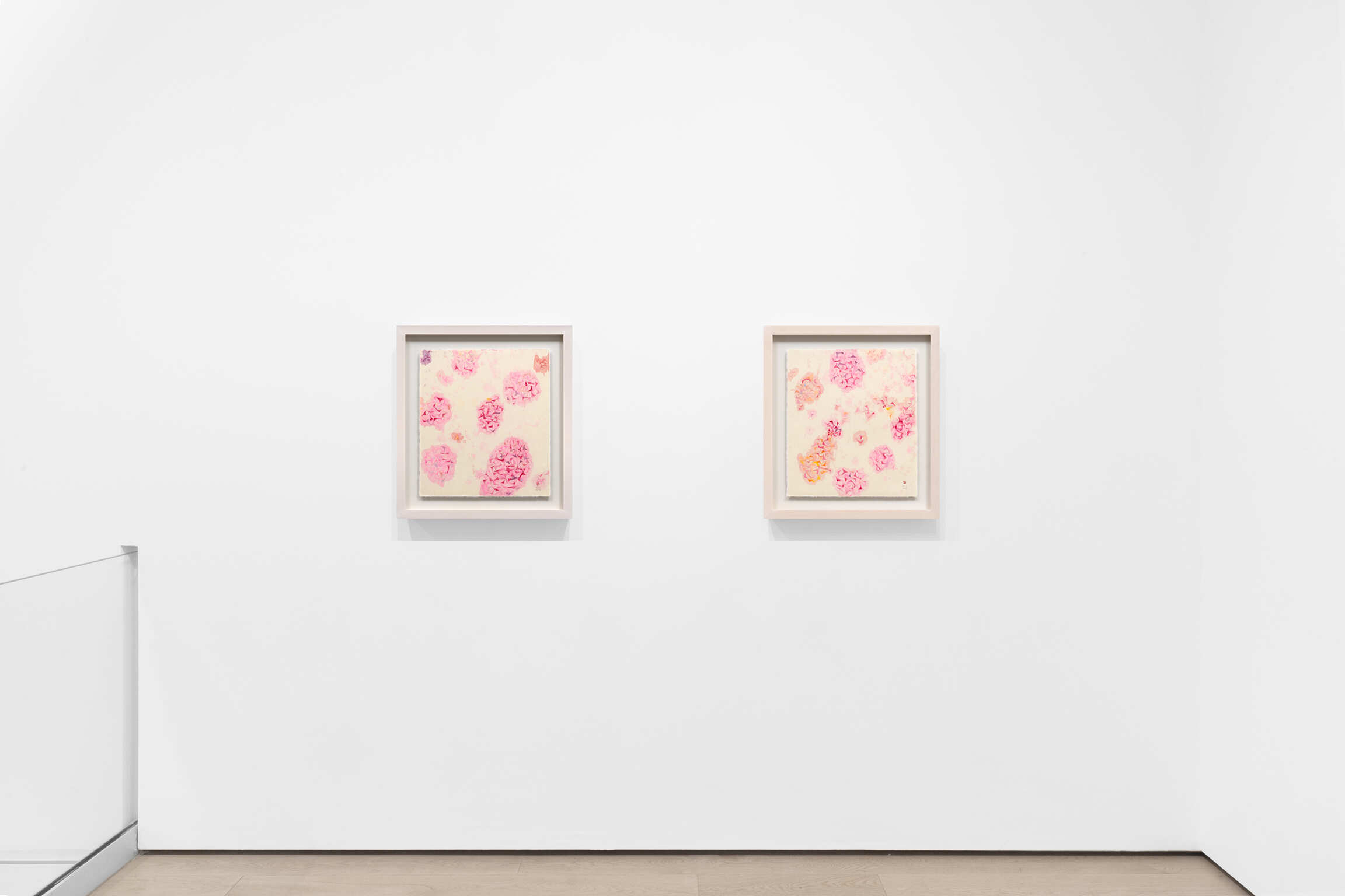 With Regeneration, Kim upholds this premise with a continuation of ongoing bodies of work as well as a new series born out of recent discoveries in the studio, from which the exhibition receives its title. Aptly produced ahead of the shift in seasons from winter to spring, the works spawn from leftover paper that Kim brought into contact with leftover watercolor. The resulting pink hues that spread across the paper’s surface glow with new life as though born from the beauty of discovery. In Regeneration, a duality of old and new, present in Kim’s entire practice, comes to the forefront and introduces an endless score of philosophical underpinnings.