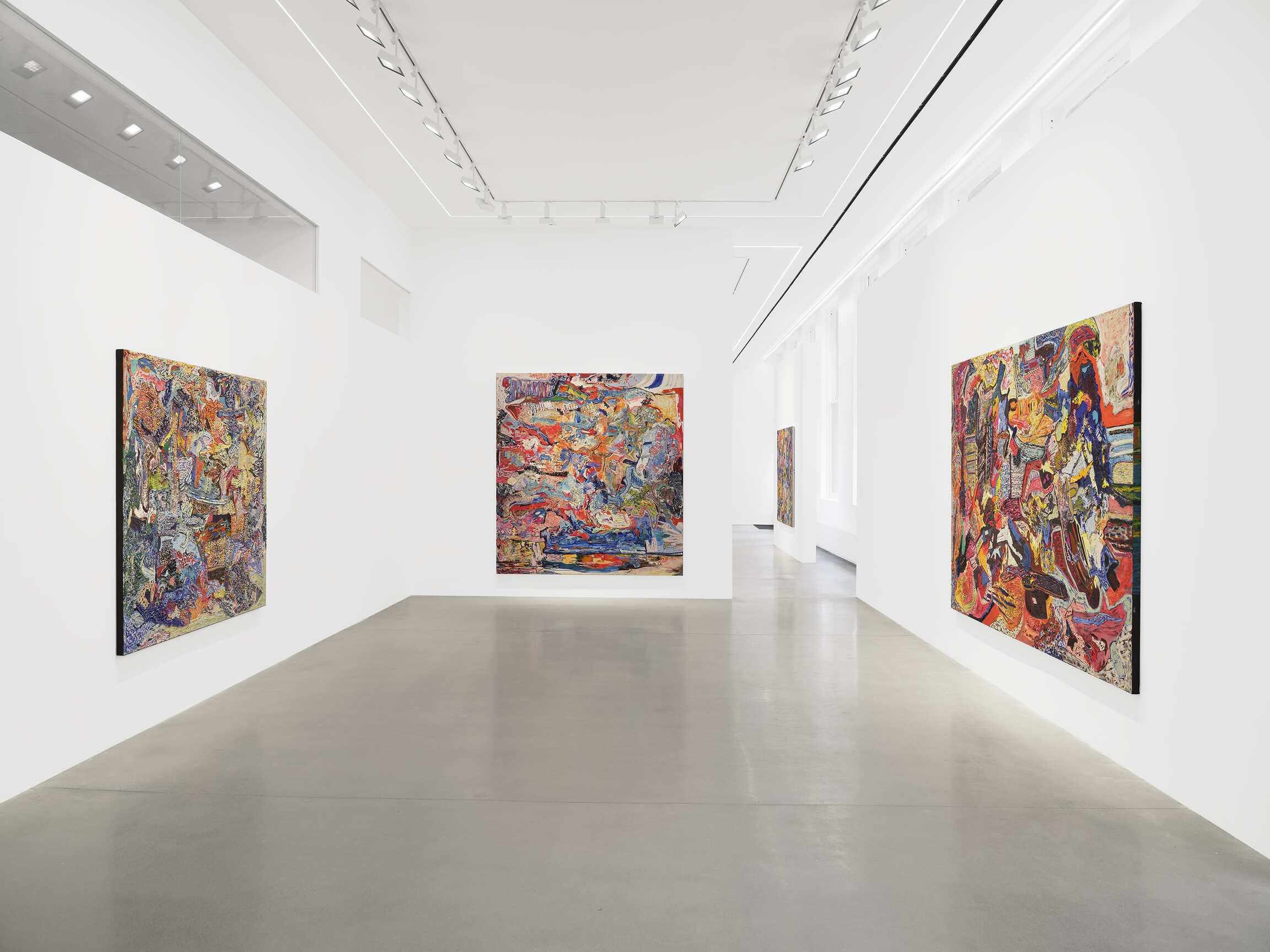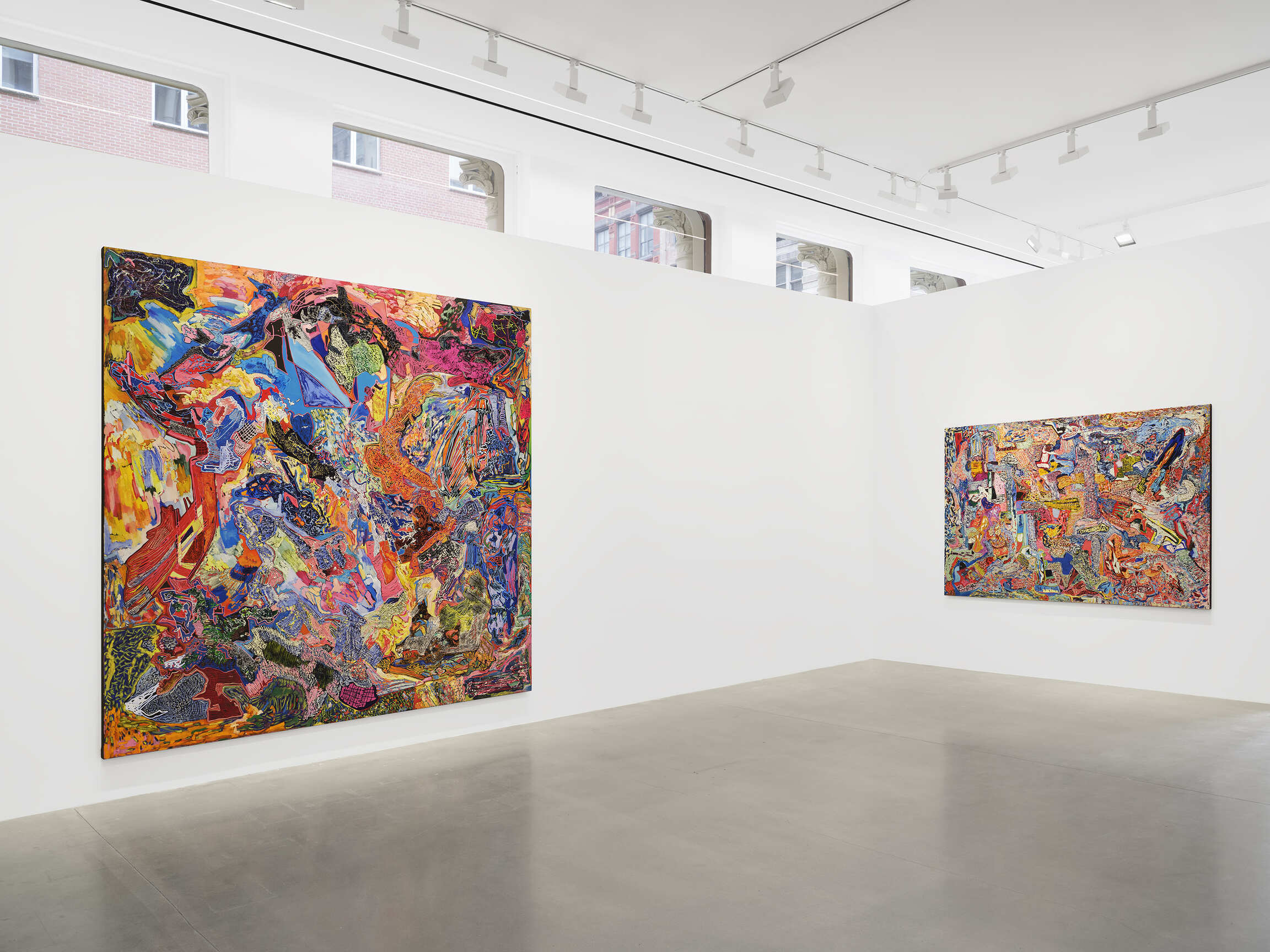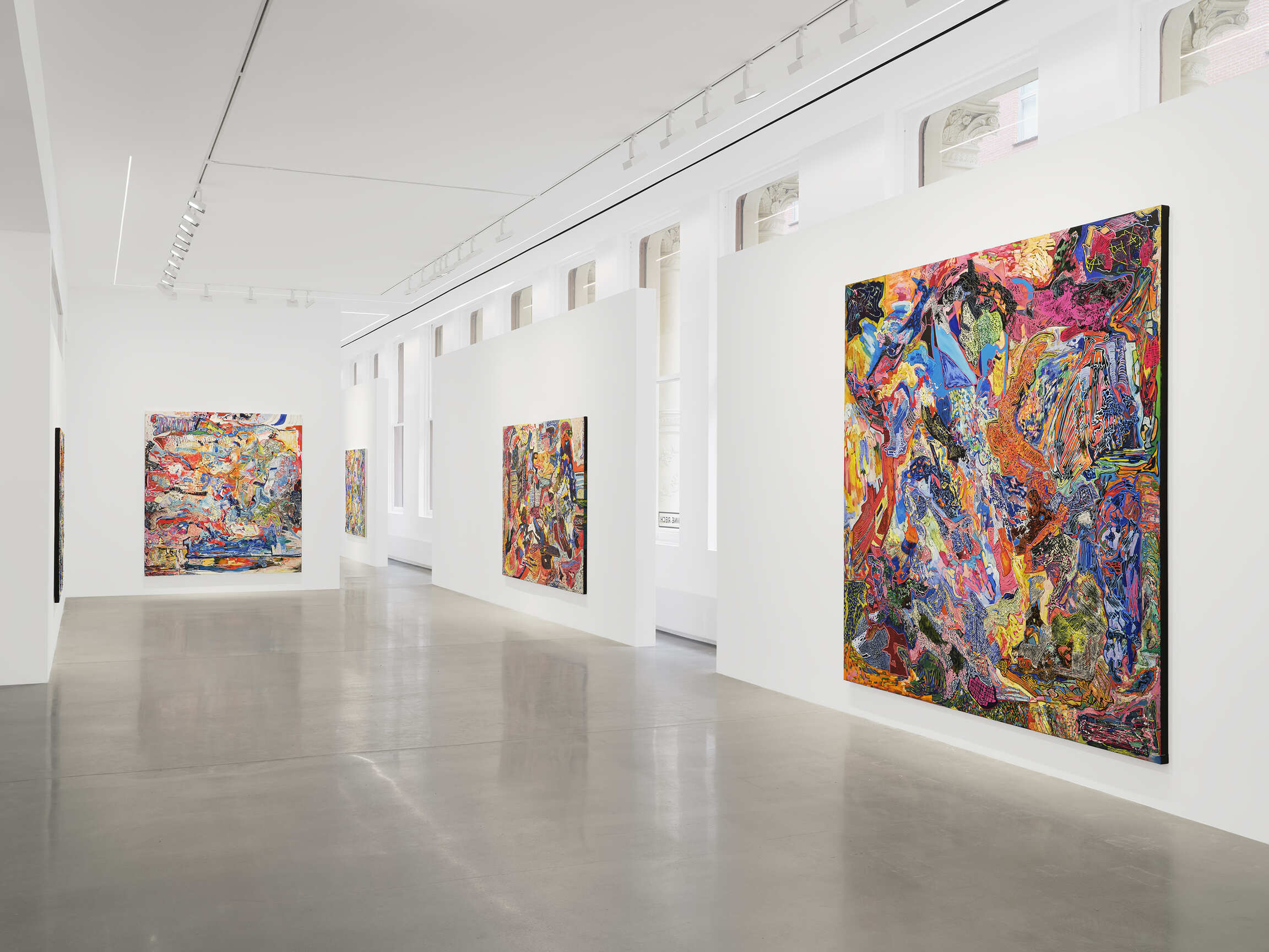 Kimmel works within a very well known history of postwar painting: Abstract Expressionism. And yet her paintings don’t look much or anything like those produced by First- and Second-generation Abstract Expressionists, the habitués of the Cedar Tavern, the gristle and sinew of the Tenth Street School. For such a stereotypically “masculine” and “tough guy” stratosphere, a lot of the guys underperform as *real men*. Jackson Pollock: a male hysteric with all manner of expressed of repressed and mockingly, amusingly displayed homoerotic “tendencies”. Franz Kline: adorable but likewise a patent mess. That these paragons of Action Painting and The Triumph of American Painting aren’t regular guys is hardly surprising. They’re self-created edifices of compromised, failed, hopeless masculinity if anything, but how vulgar to talk this way. The guys guys in this orchidaceous-hot realm were the women: Lee Krasner and Joan Mitchell, Elaine de Kooning and Grace Hartigan: they all unsex themselves after the manner of early radical feminist Lady Macbeth. Perhaps it’s fitting that among contemporary painters, certain women are their most vital descendants, keeping the shop of the forties and fifties open today and ever young: Julie Mehretu, Cecily Brown, Jacqueline Humphries, Laura Owens, and Kimmel; resisting the vulgar or maybe just way overdone and shopworn identity ideology of making and being. Unsexed. Not having it. Defiantly pissed off.