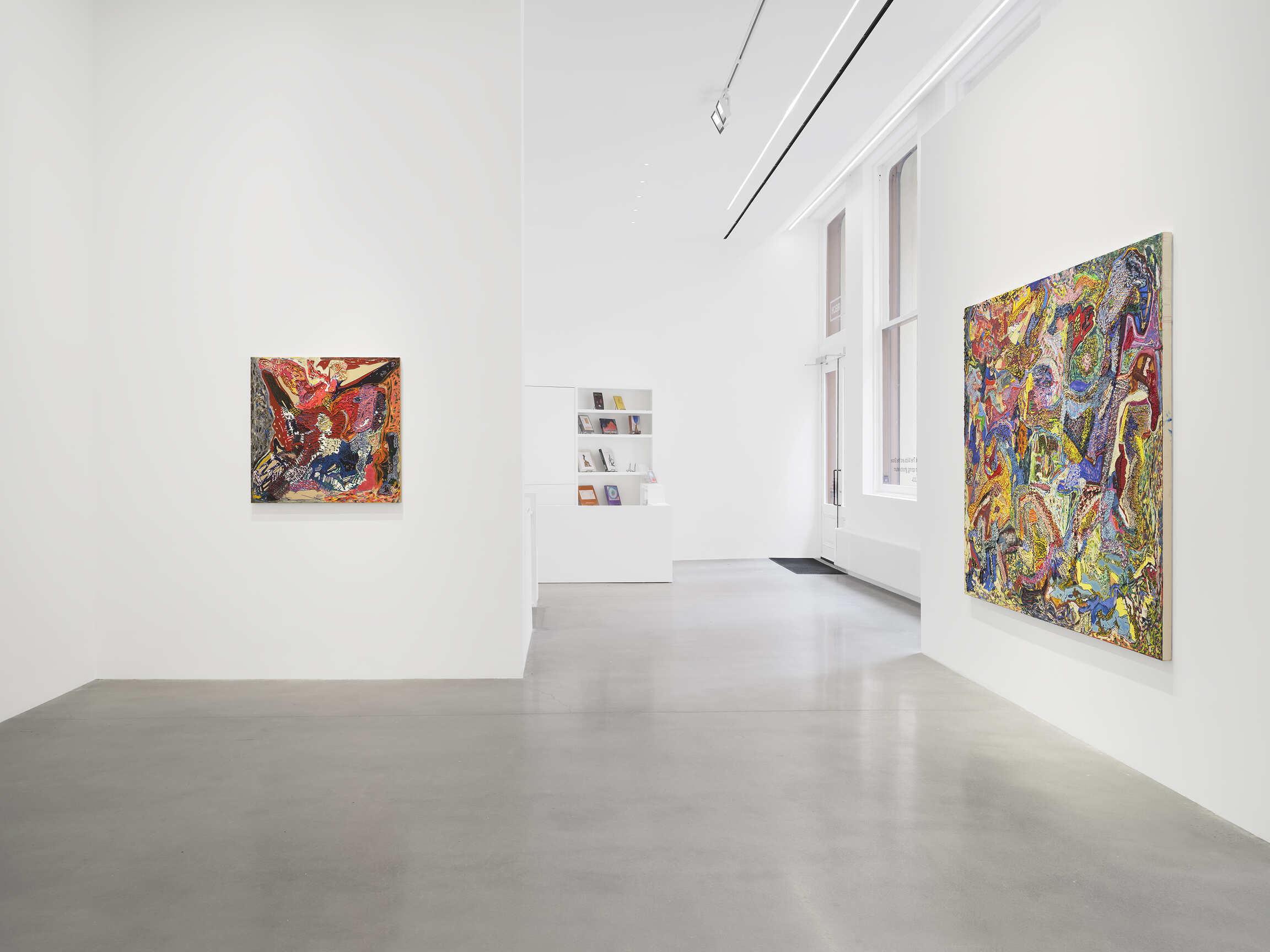 Leelee Kimmel continues in the refinement of a certain sort of abstract painting. But that word seems uneasy, correct but subtly off. What sort of refinement is this, or elaboration, or even “study”— the anodyne quality of that word is deliberate. Kimmel is outside of fashion: not so much as a whisper of personal experience or life story, no appeal to identity, that skeleton key to all living myths and histories, omnipresent and deader than the Rev. Casuabon’s hopeless attempt to find the key to all mythology. But keeping within the conspectus of the Victorian novel, nothing is more perversely animated, more plastic with eldritch innovation, than what is dead: Dracula, Frankenstein, and a comically replete world of unquiet spirits. Kimmel would be uninterested in pursuing the Matisse idea of art, that beautiful armchair — but no one shirks Matisse, that’s just wrong and rude. But she doesn’t do that trip. Luxe, calme, et volupté — well Kimmel’s paintings have a luxurious quality, even a voluptuous one; but they’re very seldom calm.