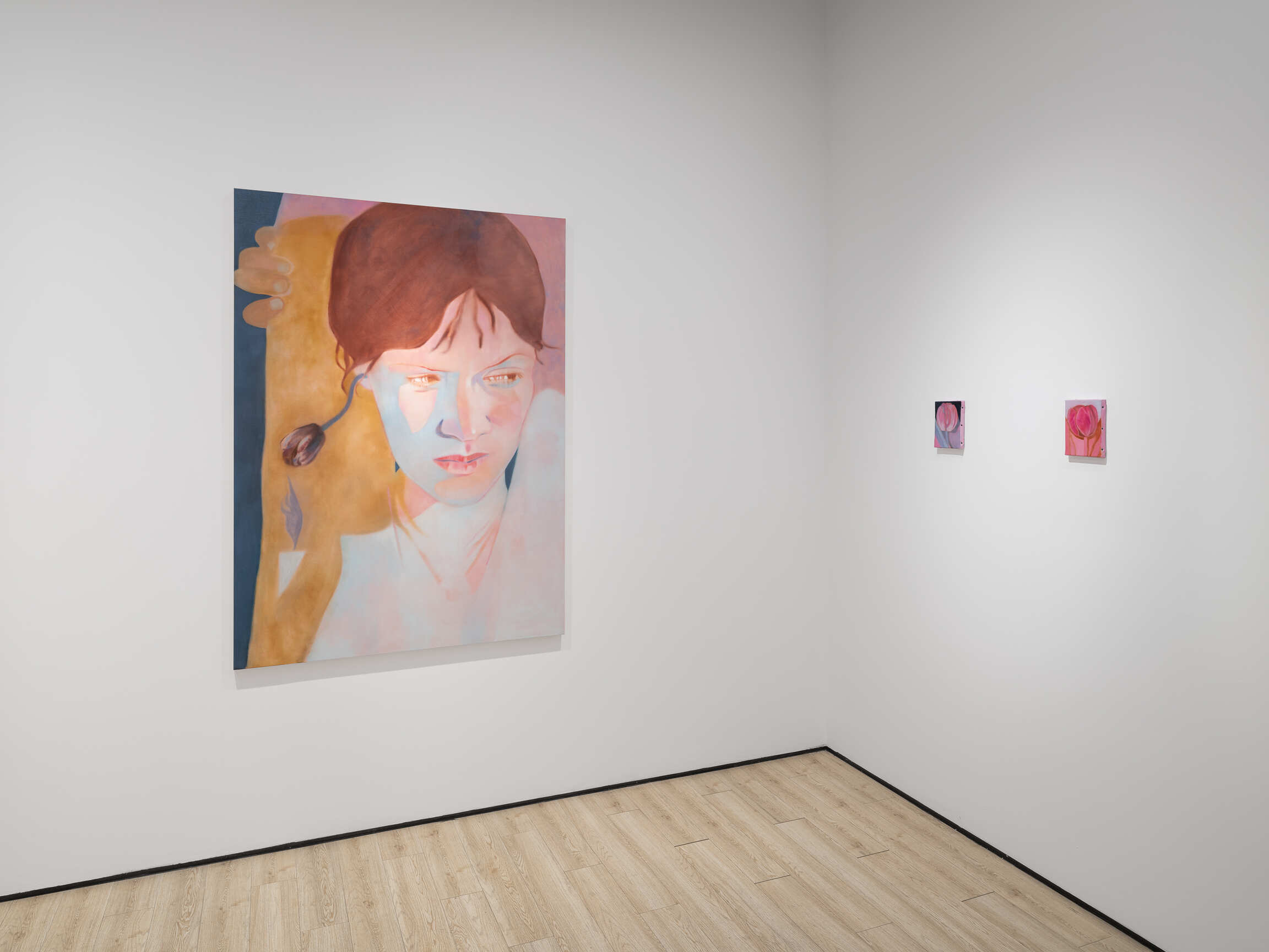In this painter’s enchanting universe, the search for meaning is revealed as a guiding theme that runs through every painting in the exhibition. The solitary giantess “clasping flowers like sacred relics” embodies this aspiration to find a deeper meaning in a world without magic. Her unusual ritual of plugging her ears with flower stems becomes a way of “defying the established order and transcending the banality of the everyday.”