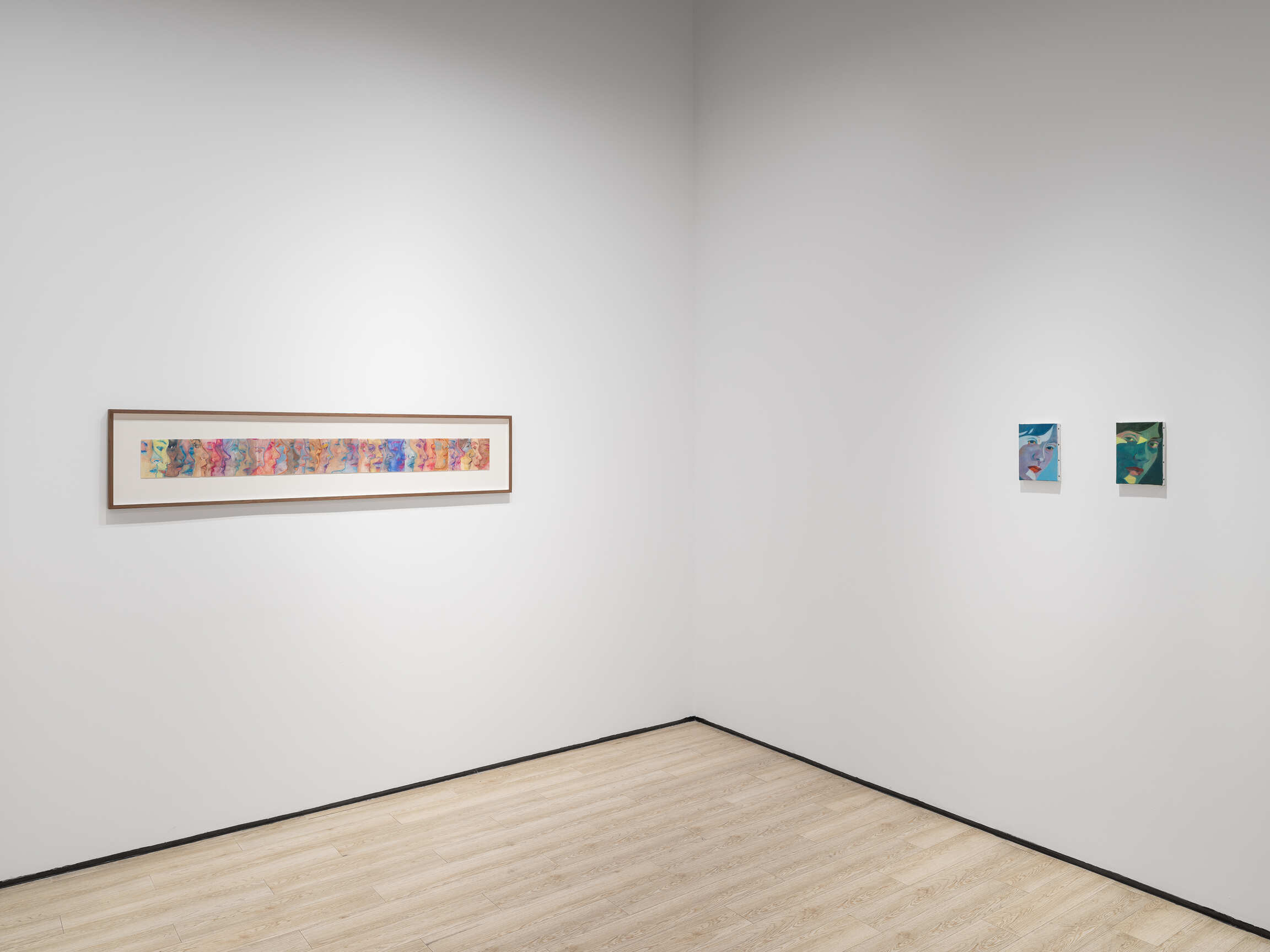 Les Silences du Désir also highlights a series of small exquisite corpses drawn during the artist’s time in Spain. These patchworks show the influence of surrealist practices in Longevial’s work. Each drawing is an open window onto the artist’s unconscious, a journey into the twists and turns of the imaginary, somewhere between the real and the fantastic. Contemplating them, the viewer is invited to get lost in a maze of symbols and hidden meanings.