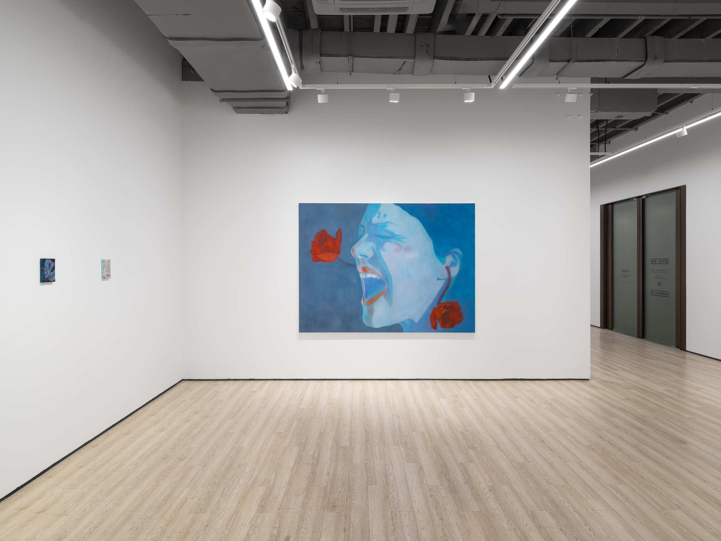In the privacy of her studio, this female excess emerges from her brush expressing its own rules and desires. Her eyes marked with melancholy in the first painting, Tulipe noire, gradually look up at others, unrestrainedly revealing a violence, her desire, her sexuality, like a constant transformation, thus embodying the complexity of human passions and unveiling the unsuspected depths of the artistic soul. This is especially evident in her blue painting Le cri, where a naked giantess with the painter’s features shouts not from fear, but from liberation, like a conquering roar. She is faced with witnesses: other facets of humanity caught like a frieze of existence scattered with flowers.