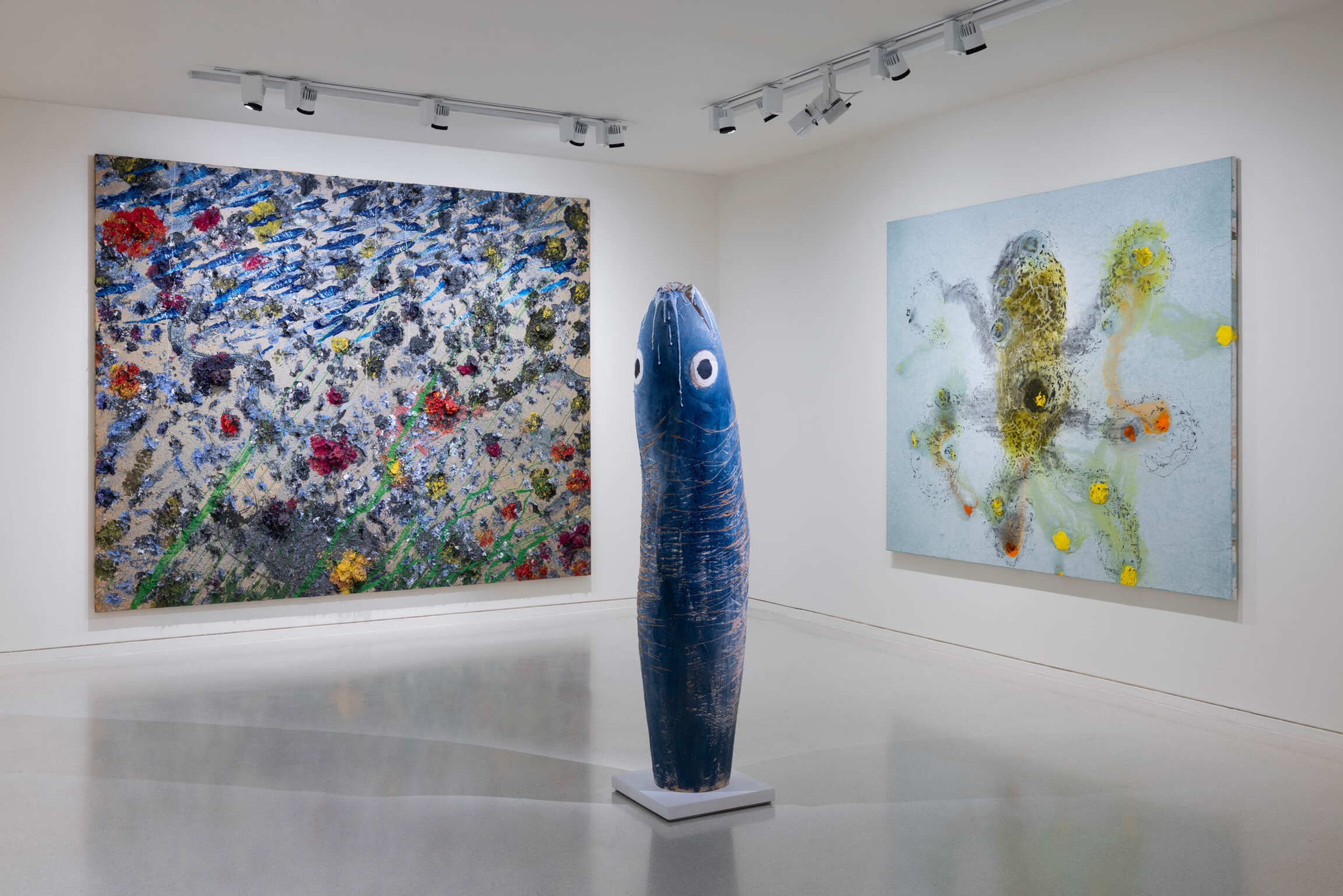 Often comparing painting to diving without breathing equipment, over the last fifty years he has created an ever-changing body of work in which the art of living is fused with nature and the most diverse influences converge. From the coastlines he visits, he brings back powerful seascapes. From the meals he eats, he derives still lifes that could not be more vigorous. From his underwater explorations, he returns with creatures and principles of symbiosis or biomorphism that allow him to extend his experiments with matter yet further.