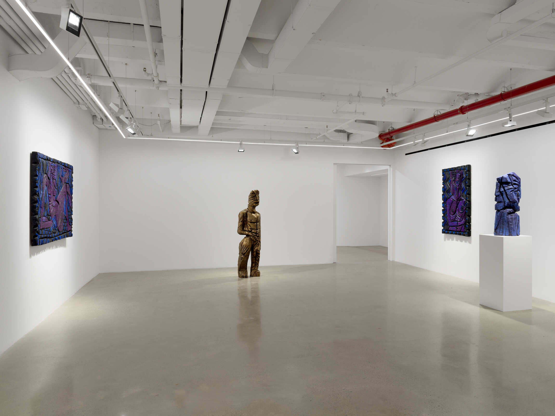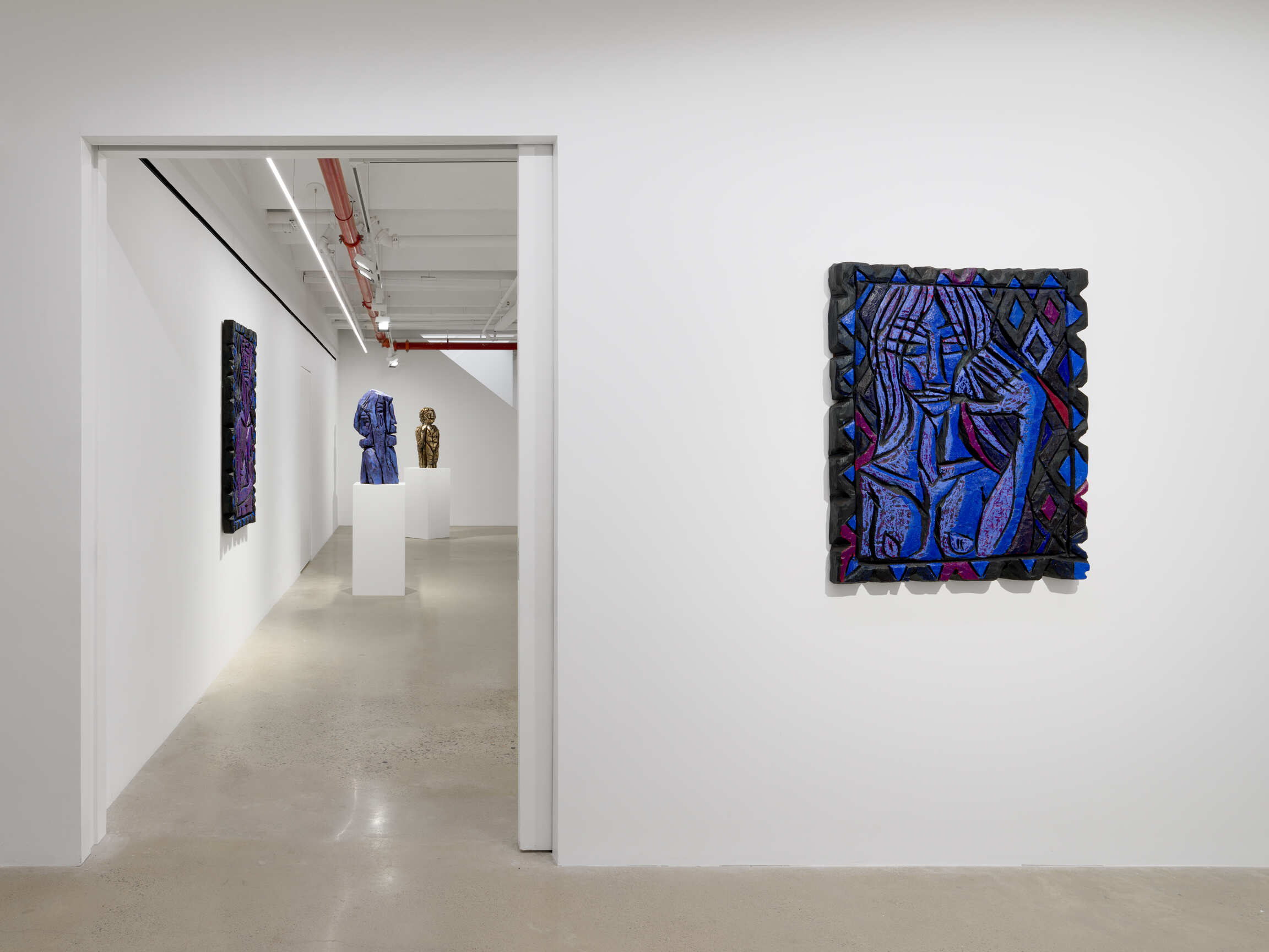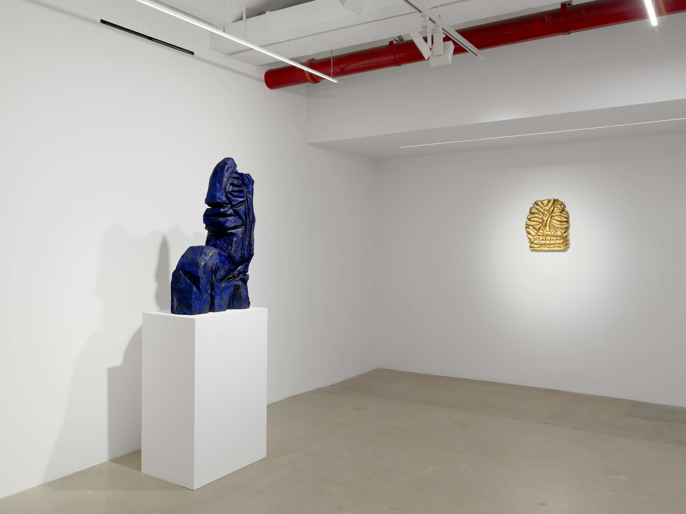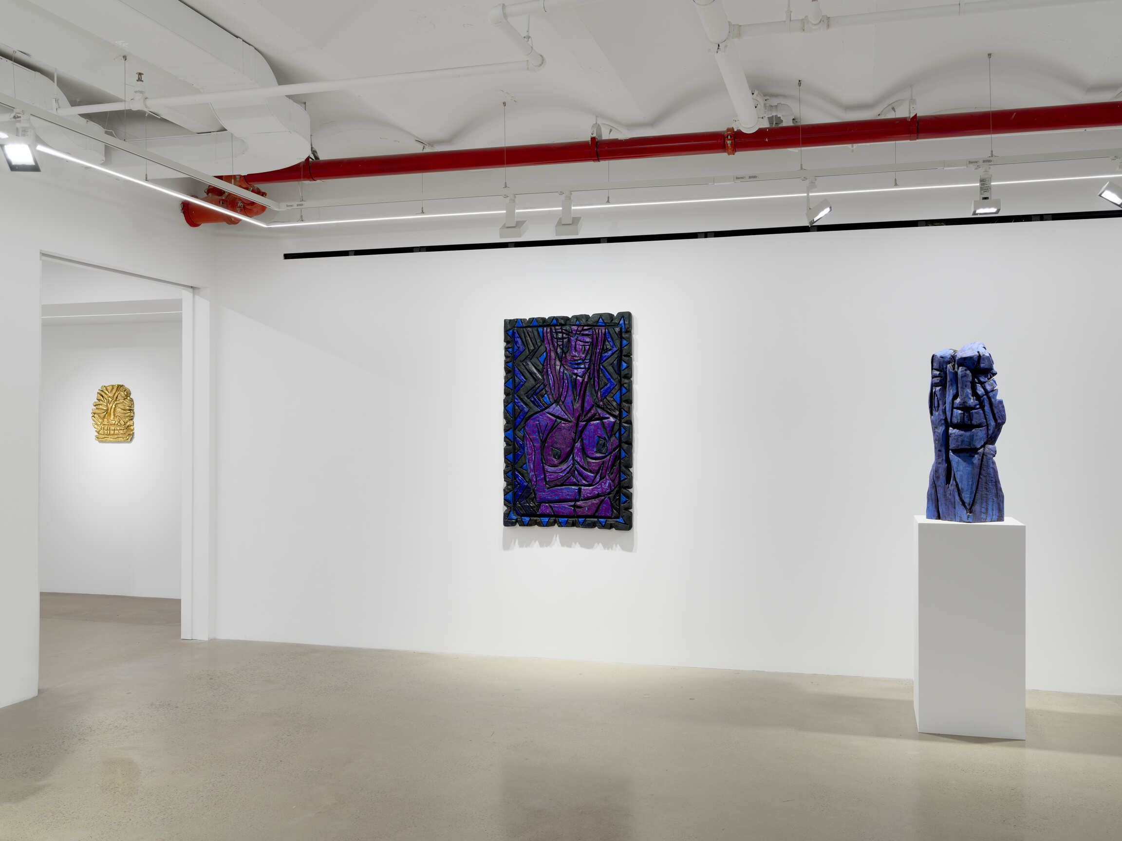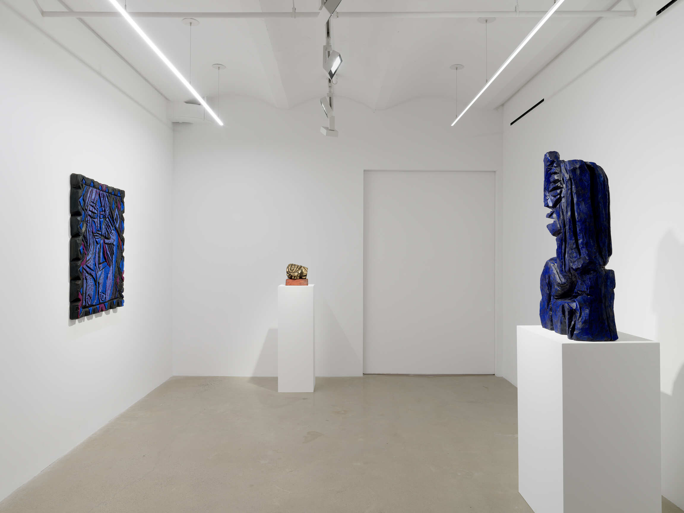 For this, his first solo show with Almine Rech, Schneider presents a holistic ensemble of wall-mounted and freestanding sculpture. Seeking a way of working and a form that would connect his paintings with his wood sculptures, Schneider created, and introduces here, a compelling new series of two-dimensional, wall-mounted carved and painted works in Sequoia wood.