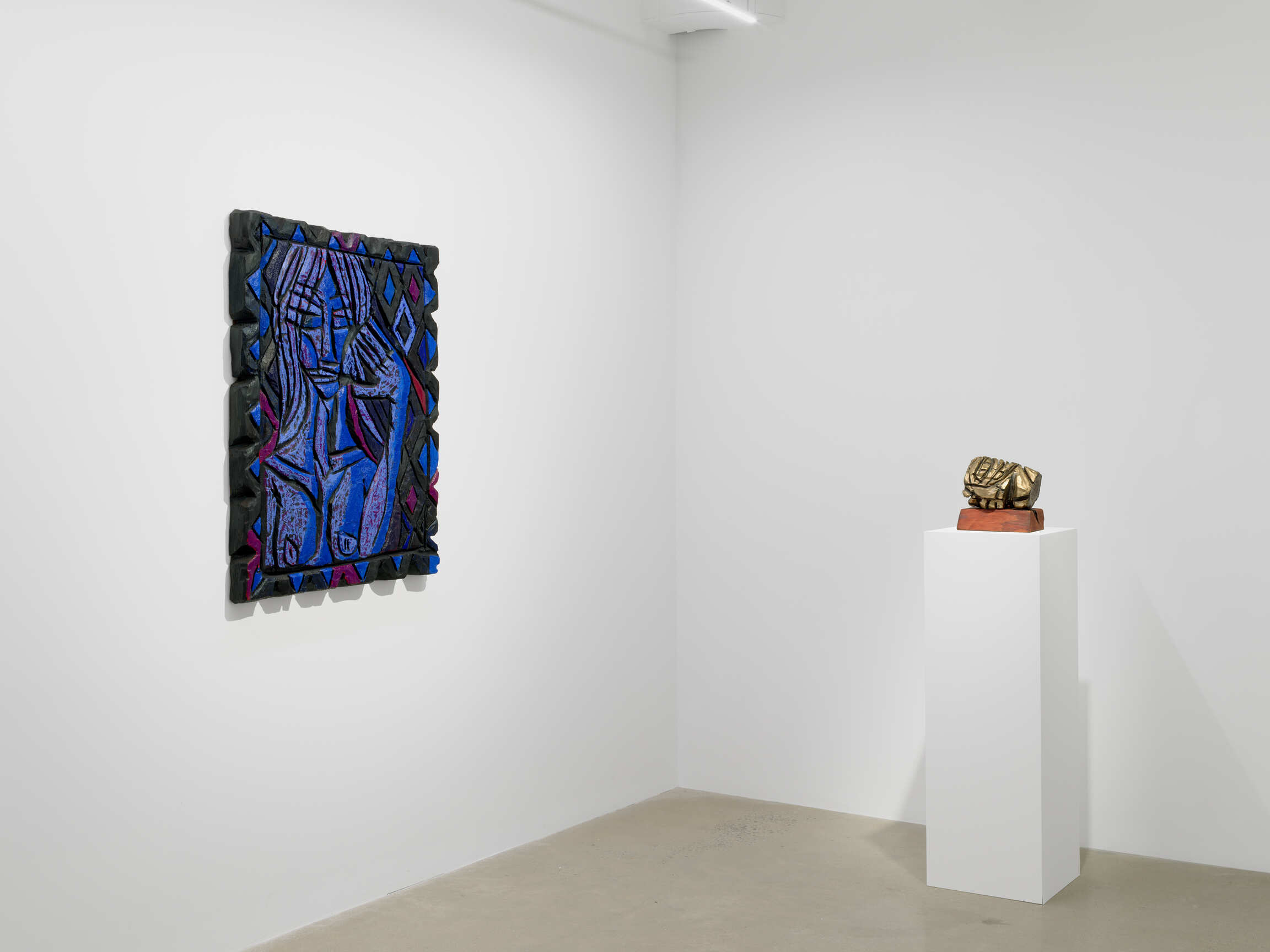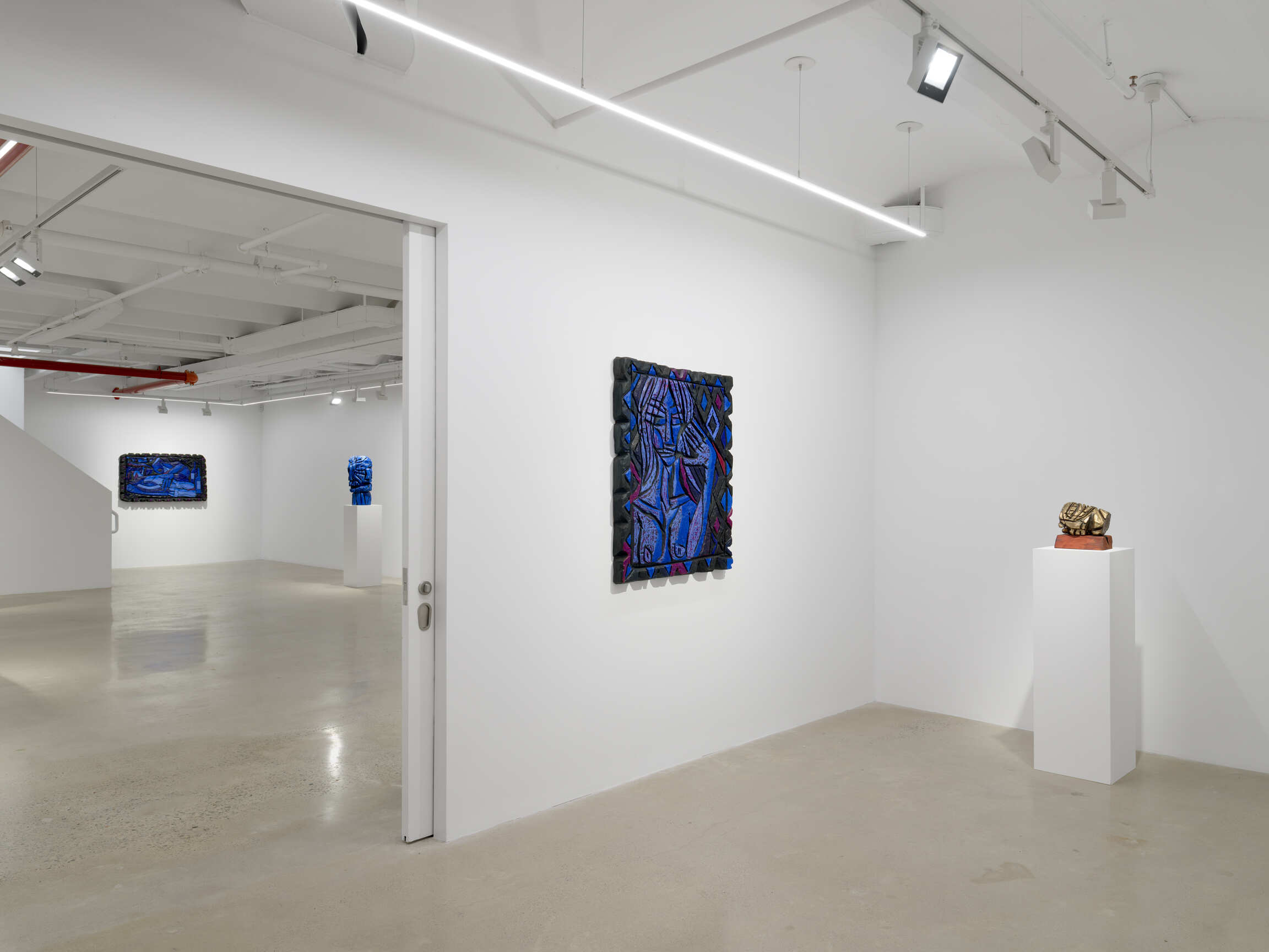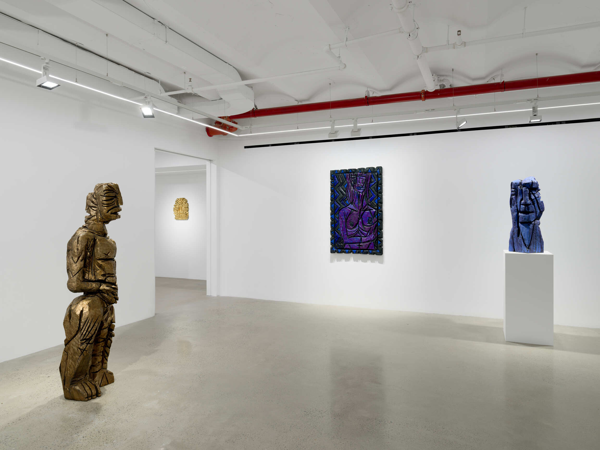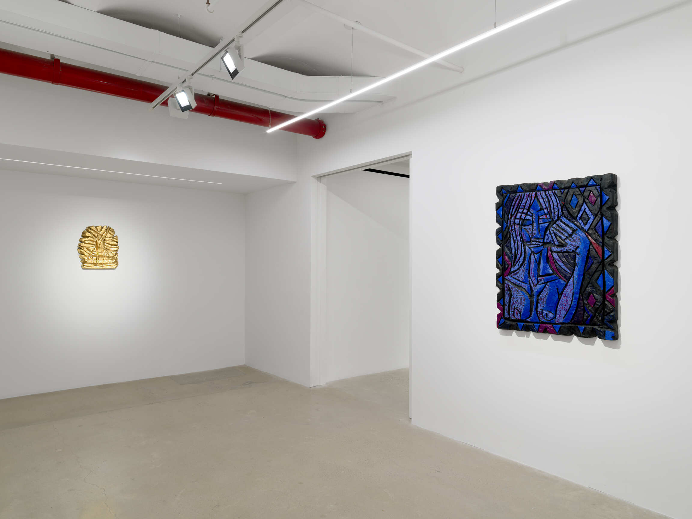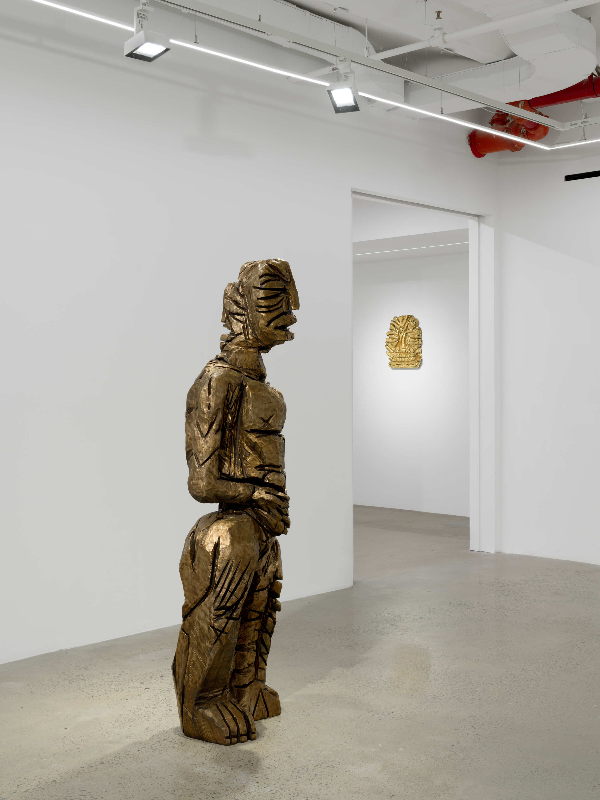 For this, his first solo show with Almine Rech, Schneider presents a holistic ensemble of wall-mounted and freestanding sculpture. Seeking a way of working and a form that would connect his paintings with his wood sculptures, Schneider created, and introduces here, a compelling new series of two-dimensional, wall-mounted carved and painted works in Sequoia wood.