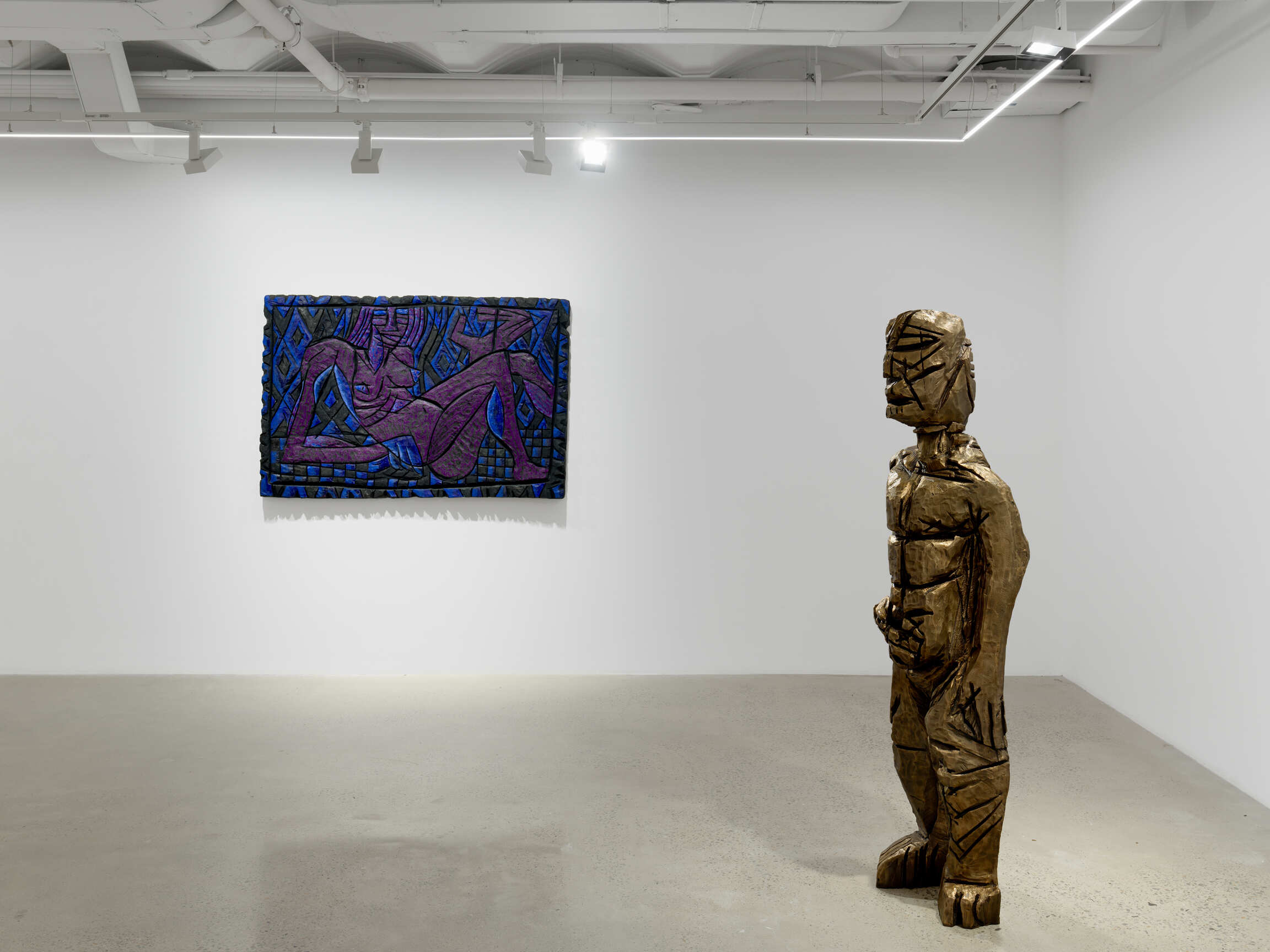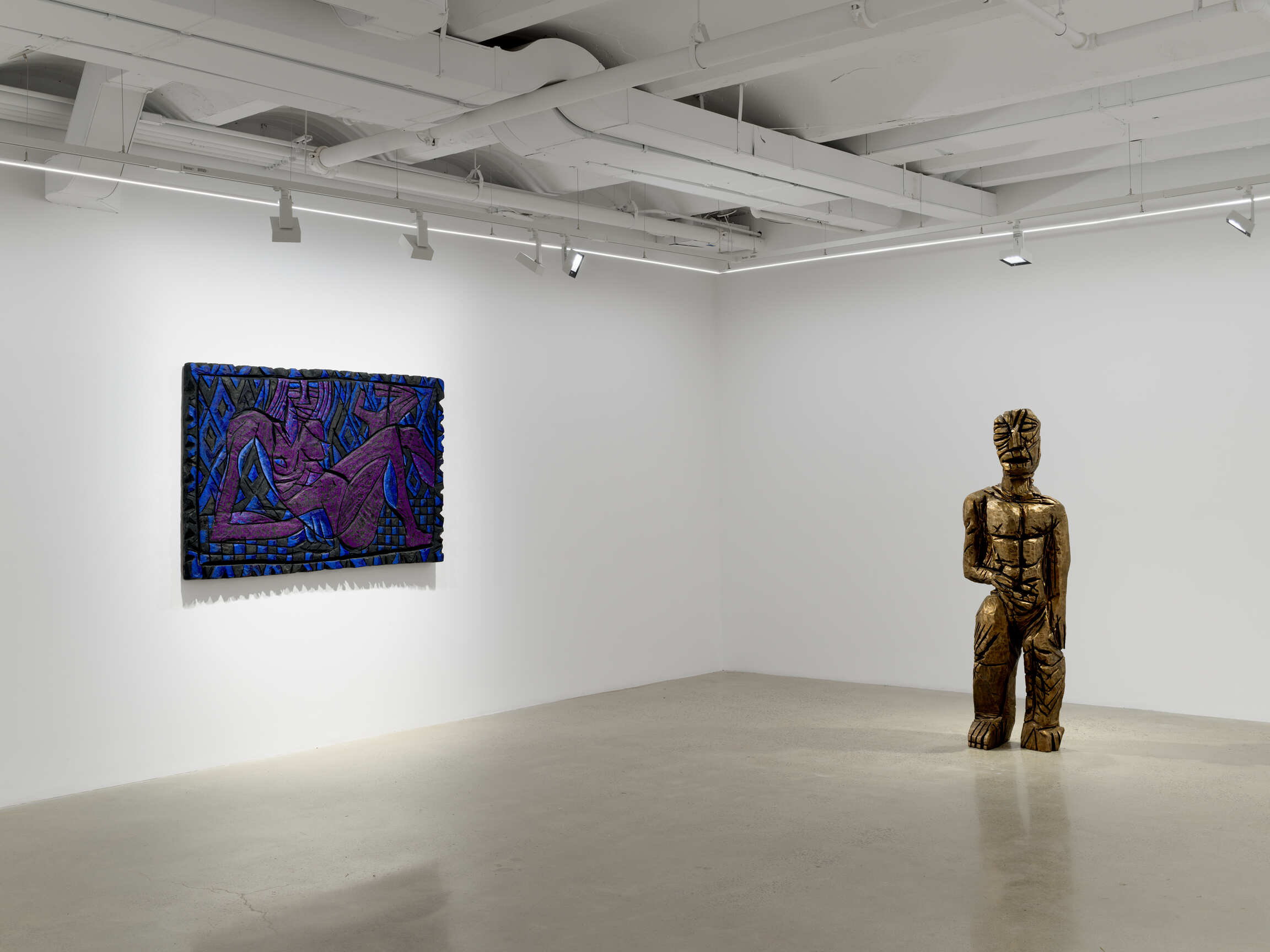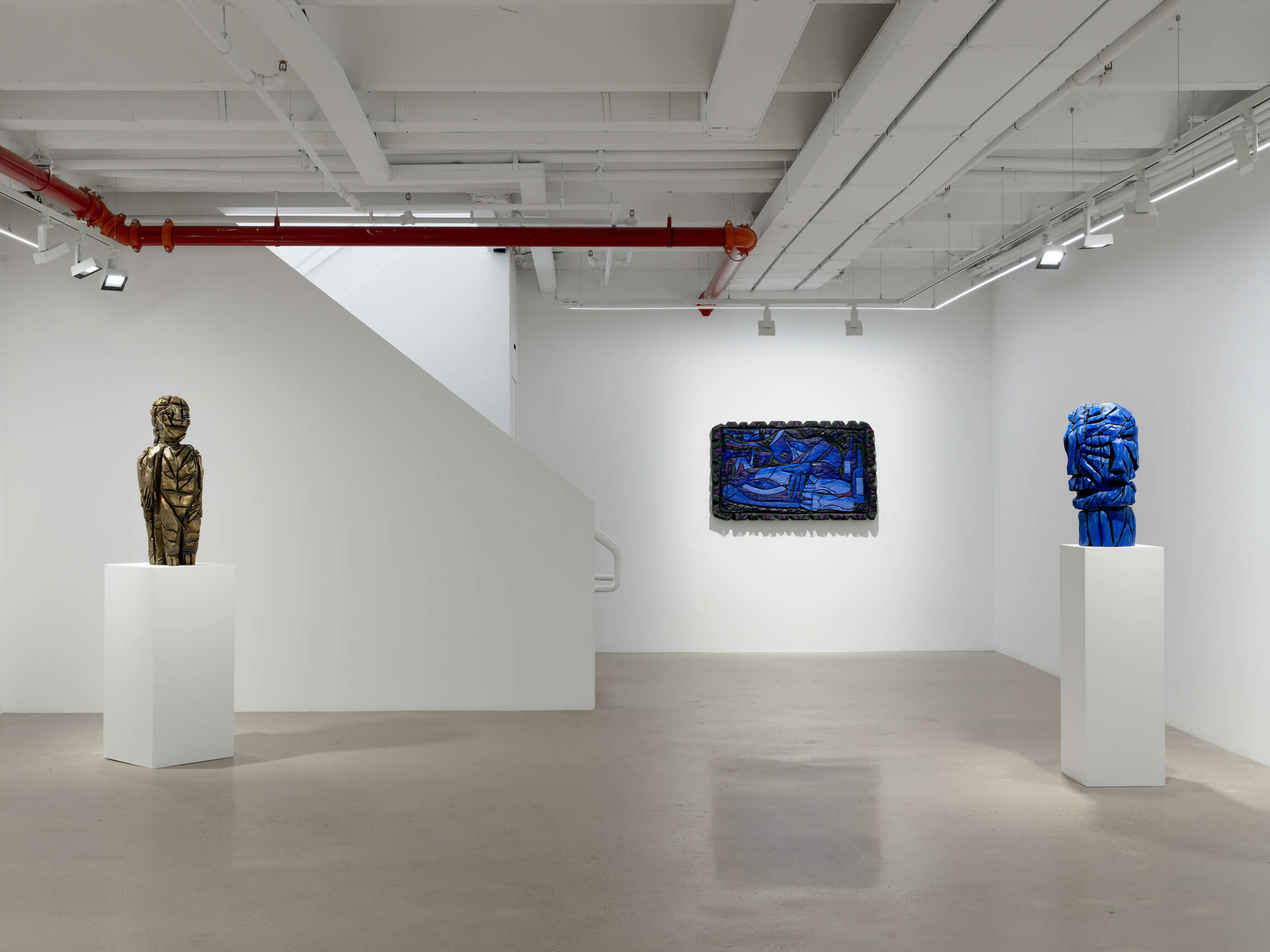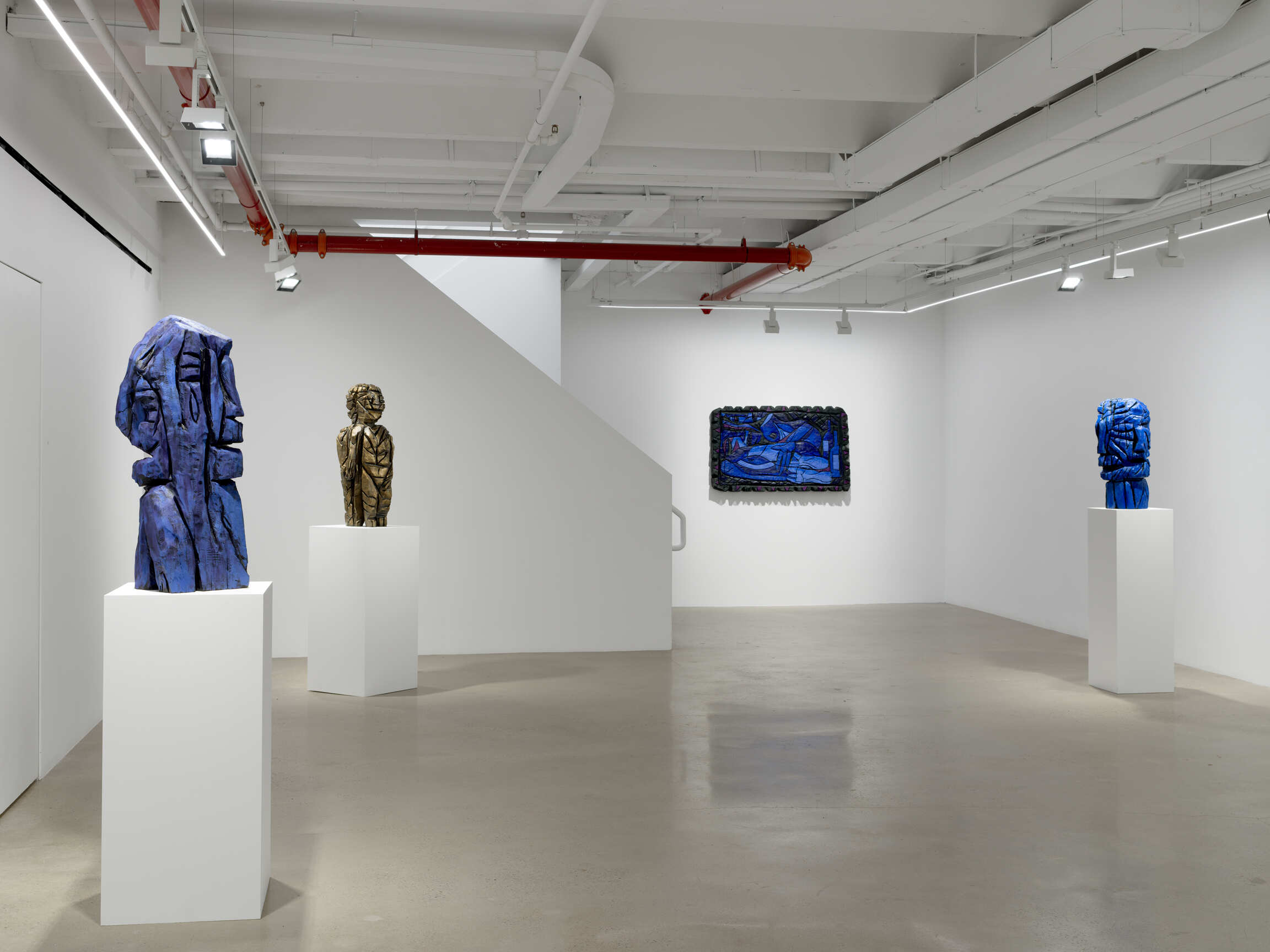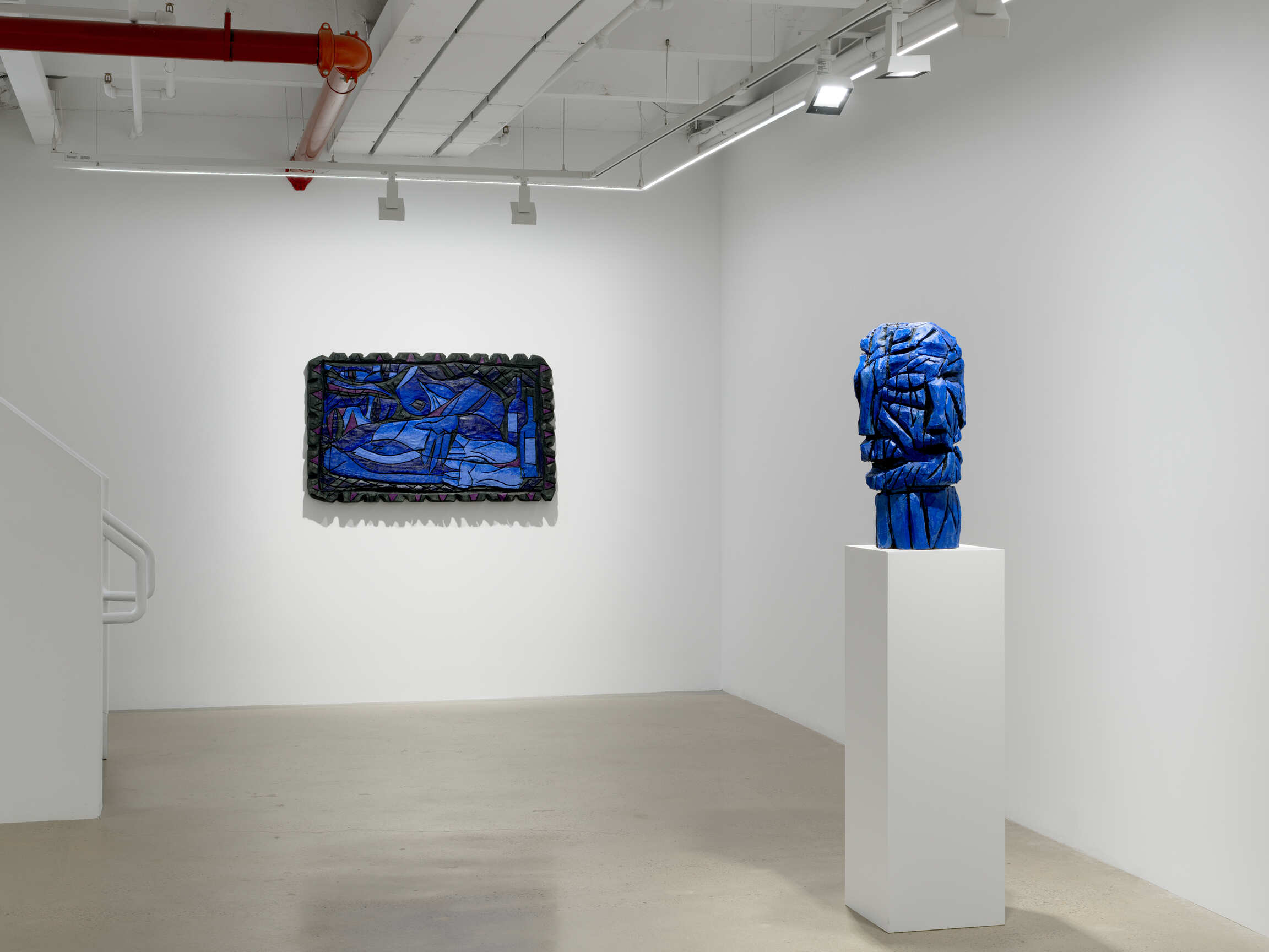 For this, his first solo show with Almine Rech, Schneider presents a holistic ensemble of wall-mounted and freestanding sculpture. Seeking a way of working and a form that would connect his paintings with his wood sculptures, Schneider created, and introduces here, a compelling new series of two-dimensional, wall-mounted carved and painted works in Sequoia wood.