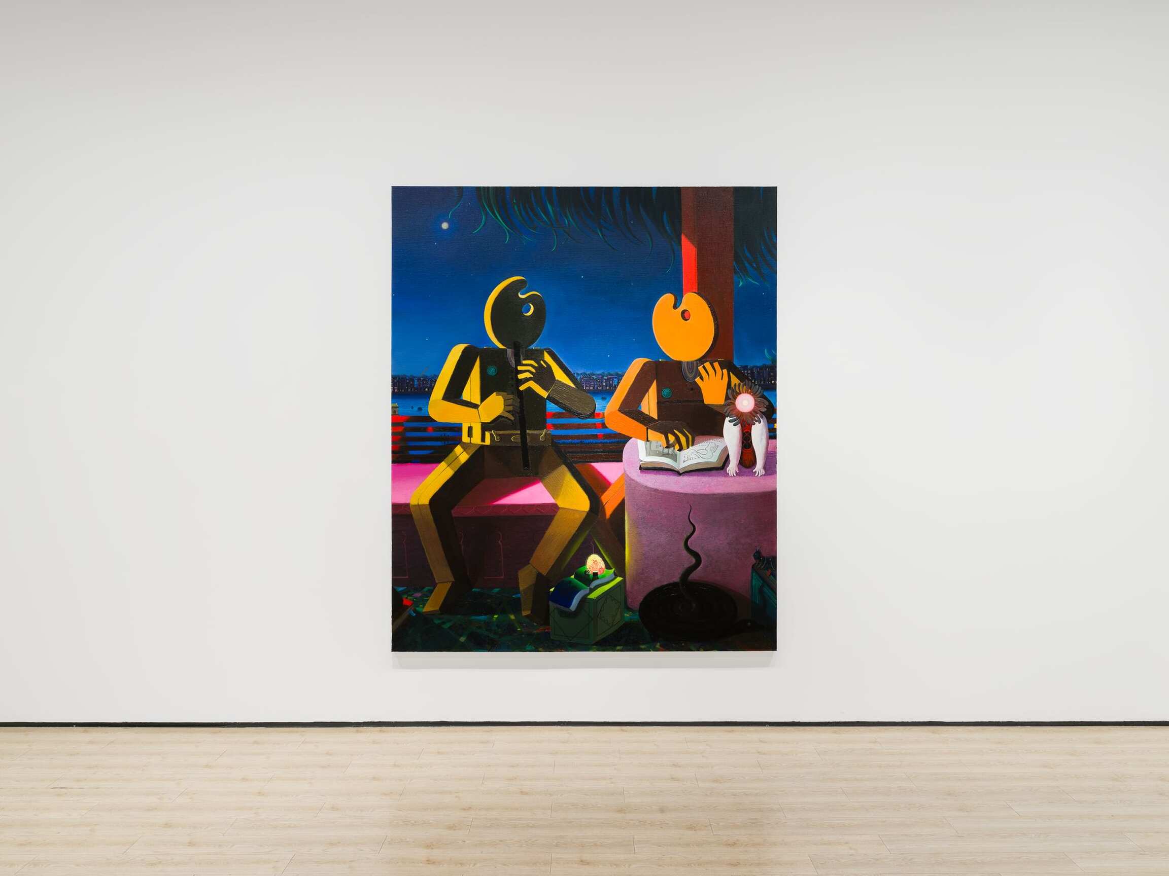 Here, Where, and There? brings together four emerging Chinese artists—Cai Zebin, Chen Yingjie, Hou Zichao, and Tseng Chien-Ying—who work by creating unique spatial constructions and expressions on canvas, roaming real and fictional, digital and cosmic spaces, bringing the viewer along for a trip through the multiverses of art.