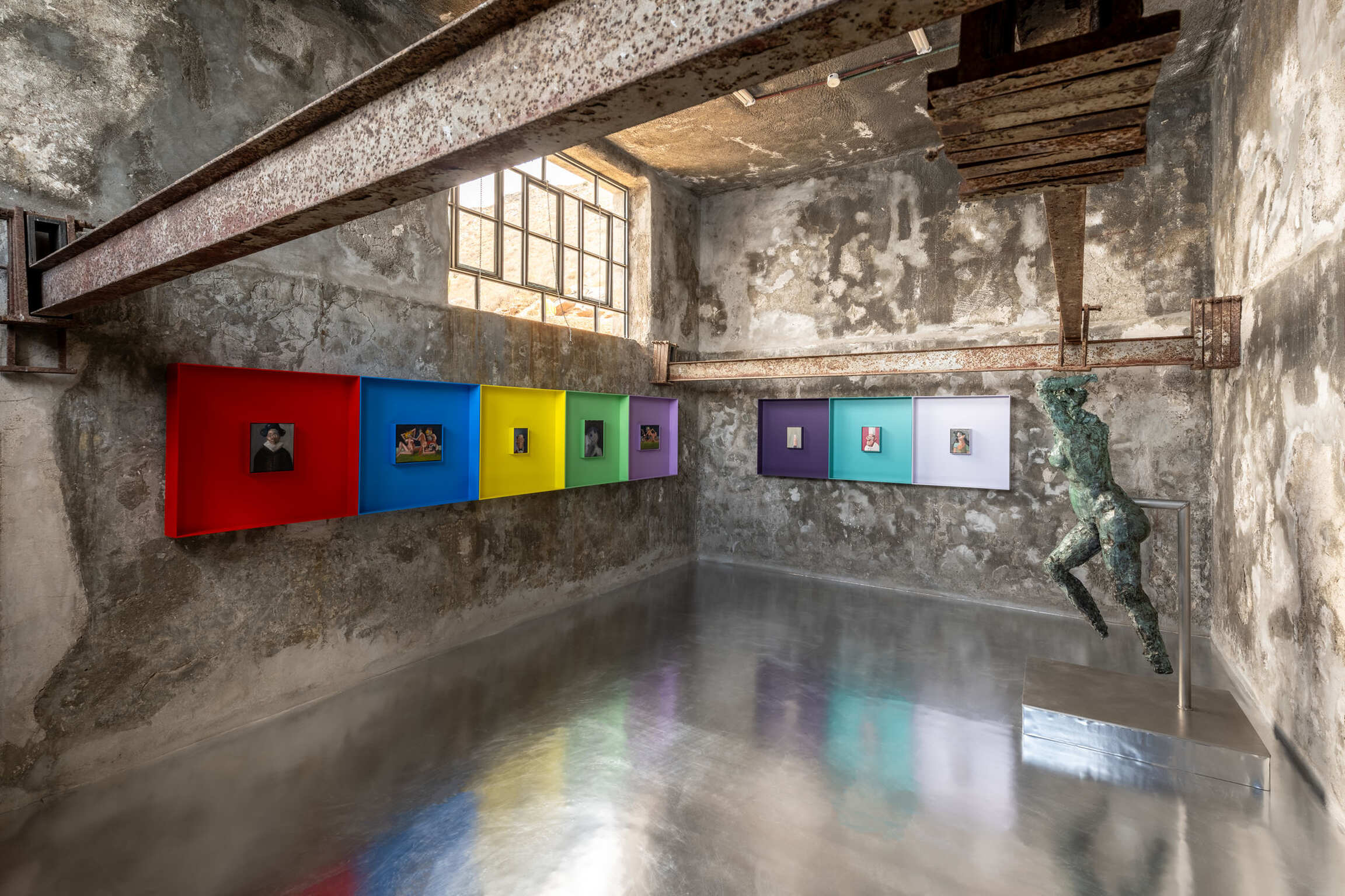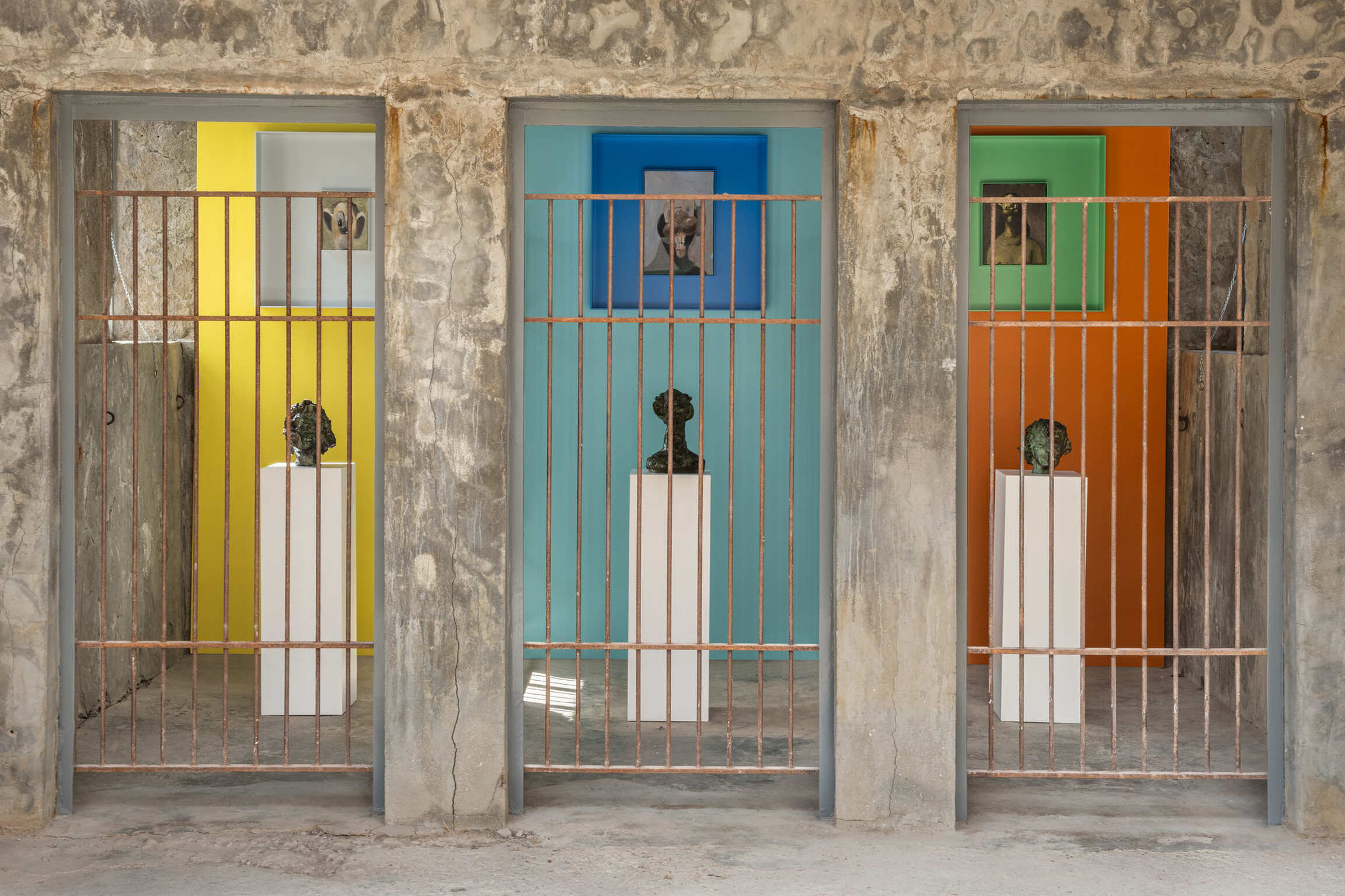 While Condo’s cast of characters are all fictional, figments of his own imagination, they embody the social uncertainties, the psychological realities, and the anguish that are characteristic of our time and age. By reflecting upon the volatility of human emotions and the precarious nature of our mental states, Condo offers a psychological investigation of human nature and an empathetic critique of modern life. While exploring the complexity and vast emotional spectrum of the human psyche, his portraits become mirrors of our era. In this special installation of works, Condo has combined the ancient element of polychromatic Greek painting in a new and unseen method. He has taken the idea of minimalistic sculpture and combined it with the shocking, unthinkable presence of these haunting portraits. It will be a new presentation of his work especially made for the DESTE Foundation. One will have to see it to believe it as the exhibition will focus not only on ancient principles such as multicolored walls in the animal cages but also wild animal-like sculptures and paintings hanging within them.