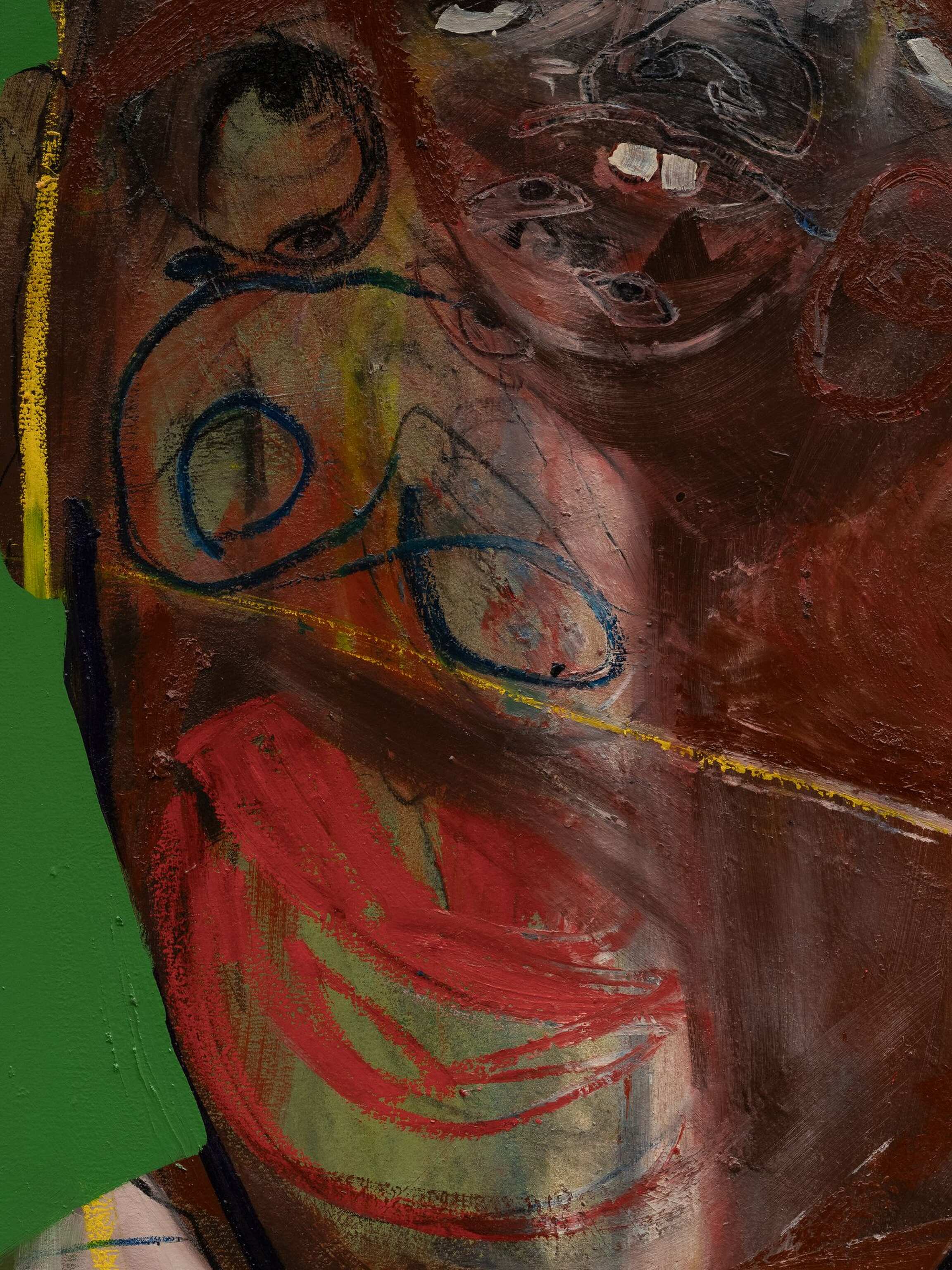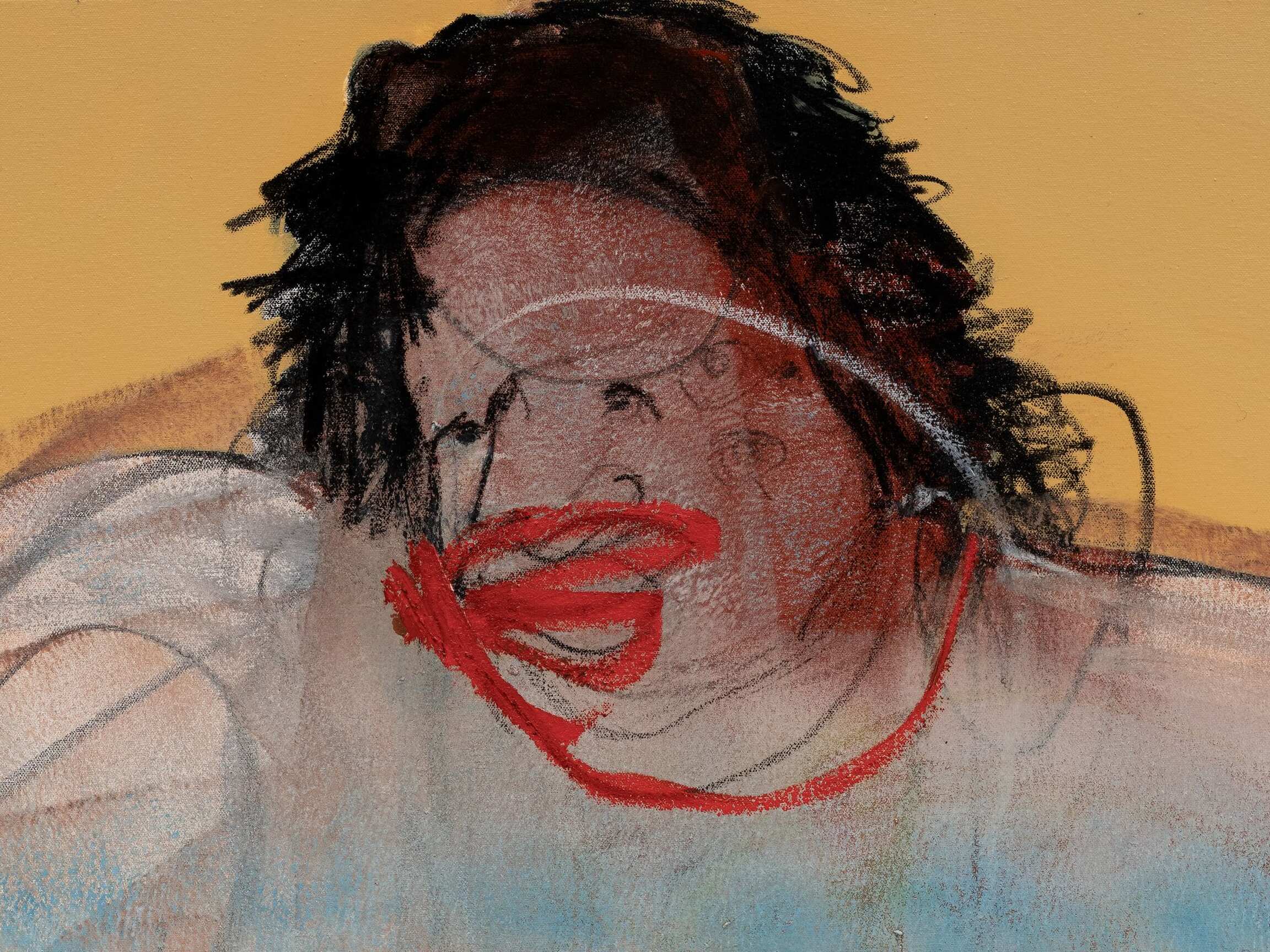 Genesis Tramaine, Saint Simon (detail), acrylic, Holy Spirit, womb energy, salt, rain water, oil sticks, oil pastel on paper, 2025