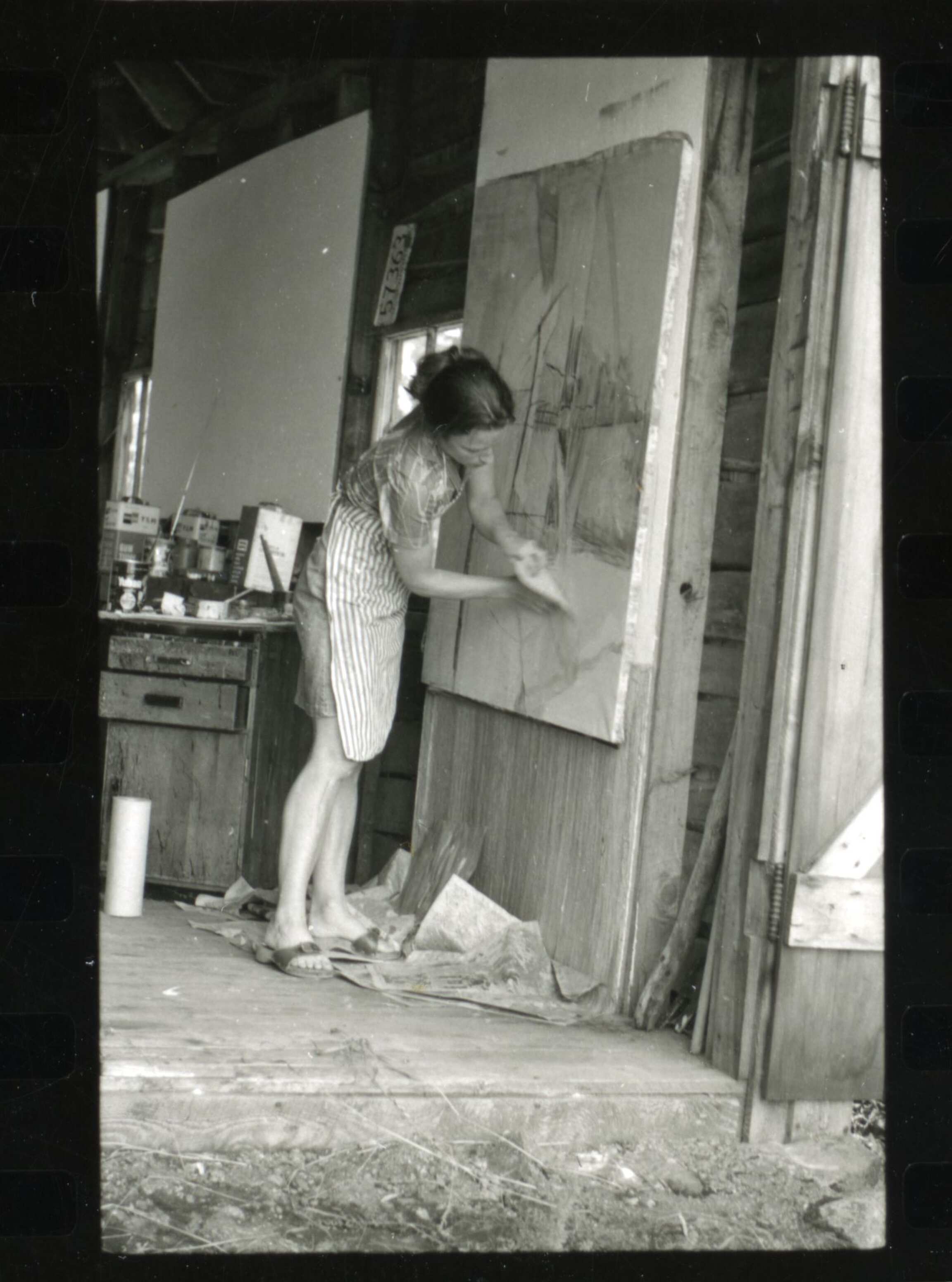 Emily Mason working in oil on paper in her studio, Brattleboro, Vermont, ca. early 1970s