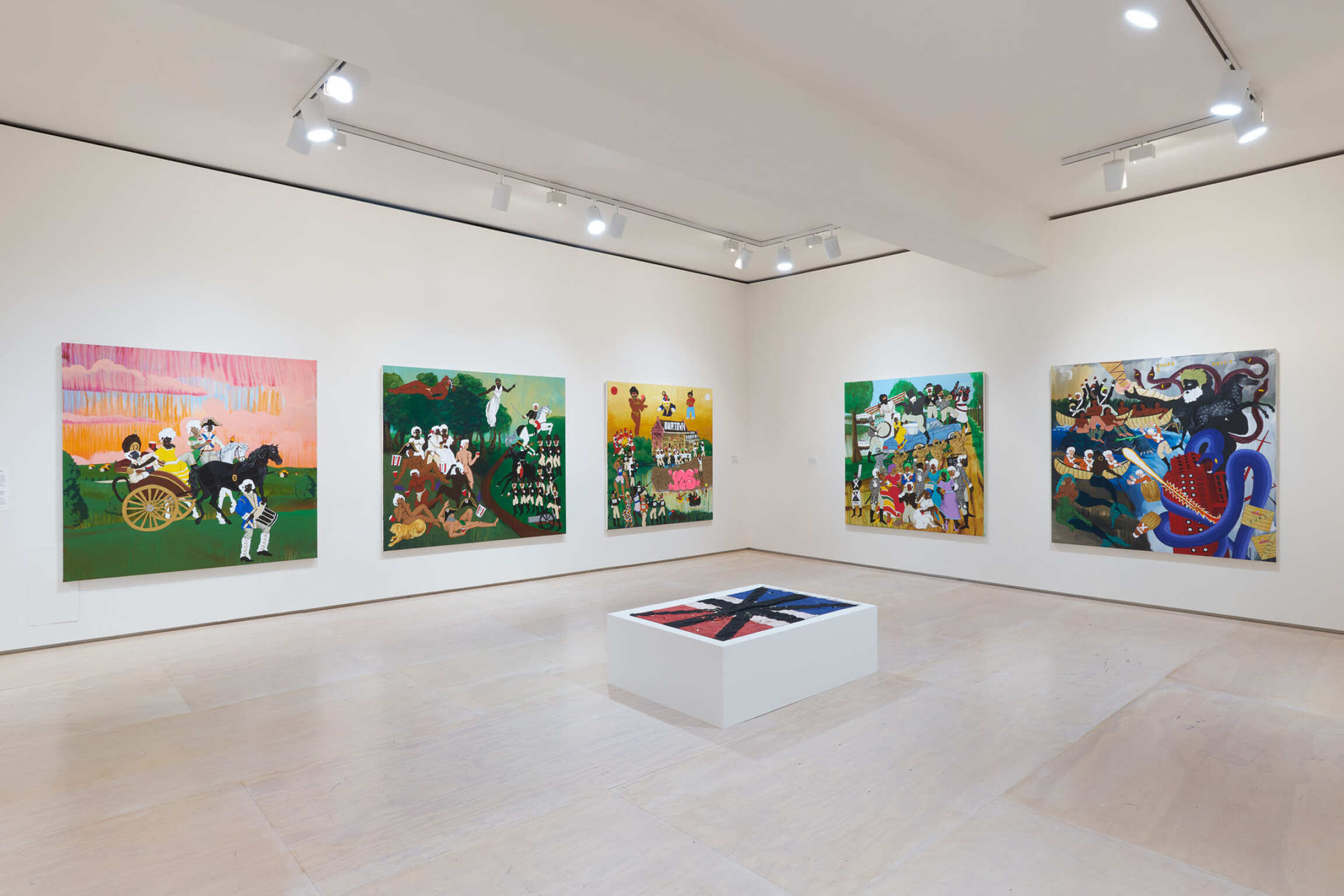 If you visit Umar Rashid’s exhibition at MoMA PS1 this fall expecting a passive interaction with paintings on a wall, you will be met with an art viewing experience that demands both your attention and critical mind. In his first solo museum show to take place in New York City, Rashid doesn’t just create an exhibition, he creates a world with a full cast of characters, histories, and plot lines.