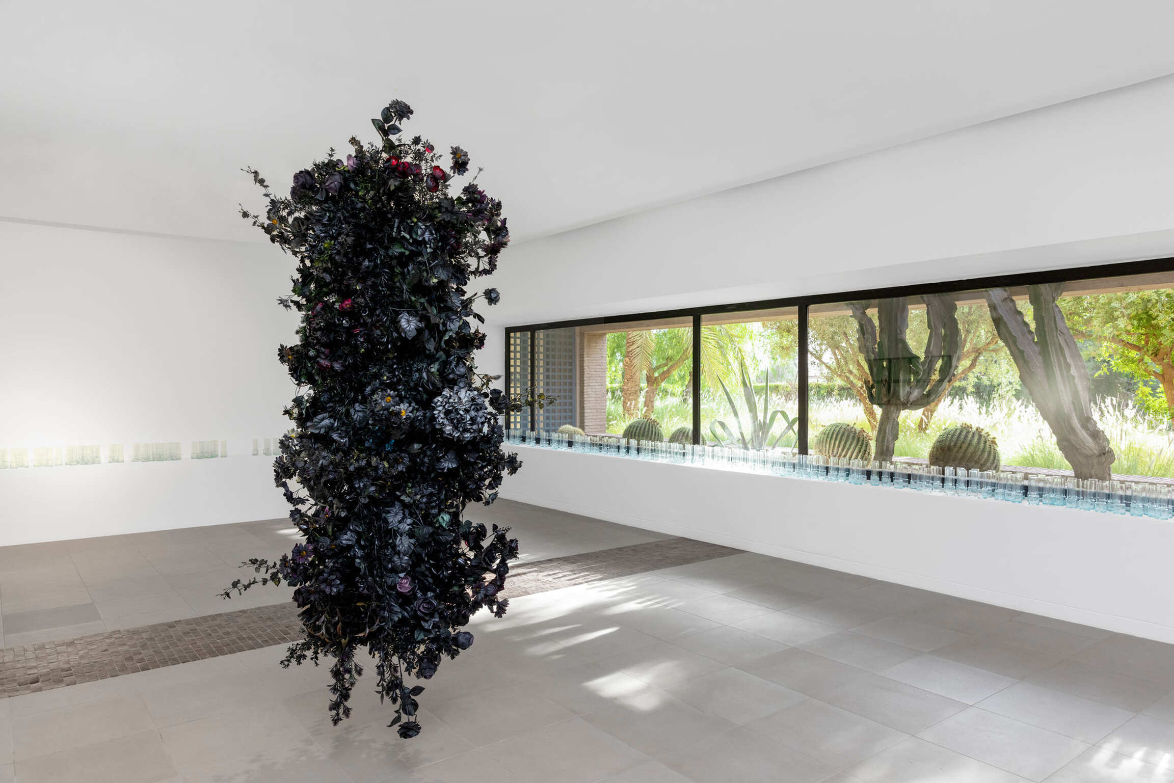 Coming from Malagasy multiculturalism which exists at the junction between Africa and Asia and is attached to Europe through colonial history, Joël Andrianomearisoa freely summons mixed references in the service of his emotional explorations. His work implements his unique way of inhabiting the coldness of industrial minimalism with the warmth of strong personal narratives that pass through time and men. After four residencies, the exhibition is the result of a dialogue with local artisans. Glasswork, embroidery, and ceramics are a few of the many forms that intervene in the mutual influence at the origin of the immersive journey that blends the borders between art and craft. Entirely produced in Morocco, the works presented in the exhibition underline local production skills and the possibility of an art world, particularly African, international, and free of import-export networks, which are often destructive both for the environment and local know-how.
